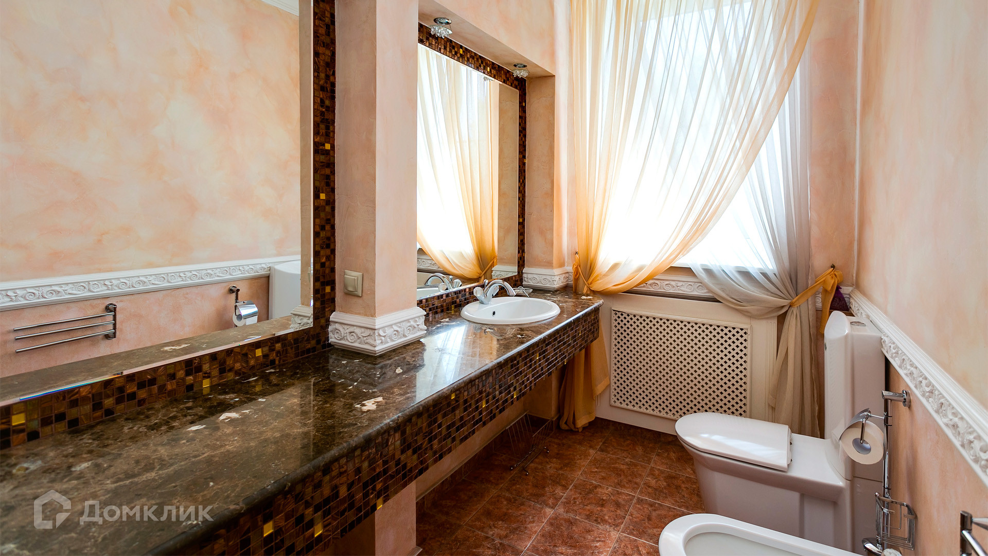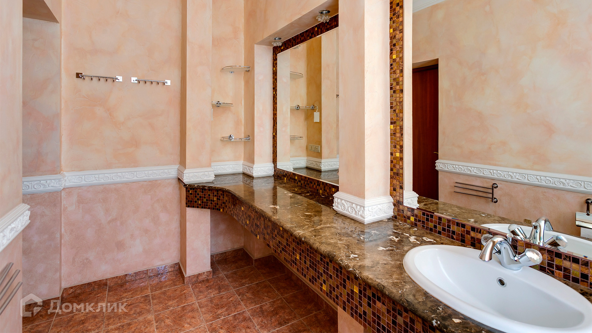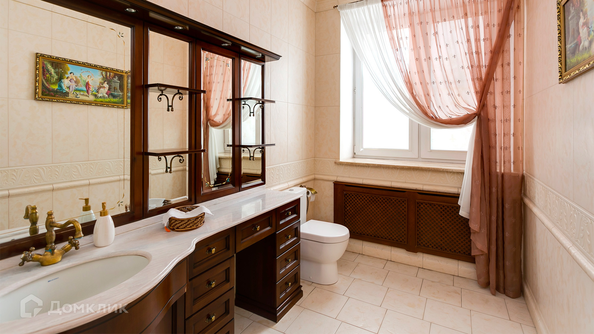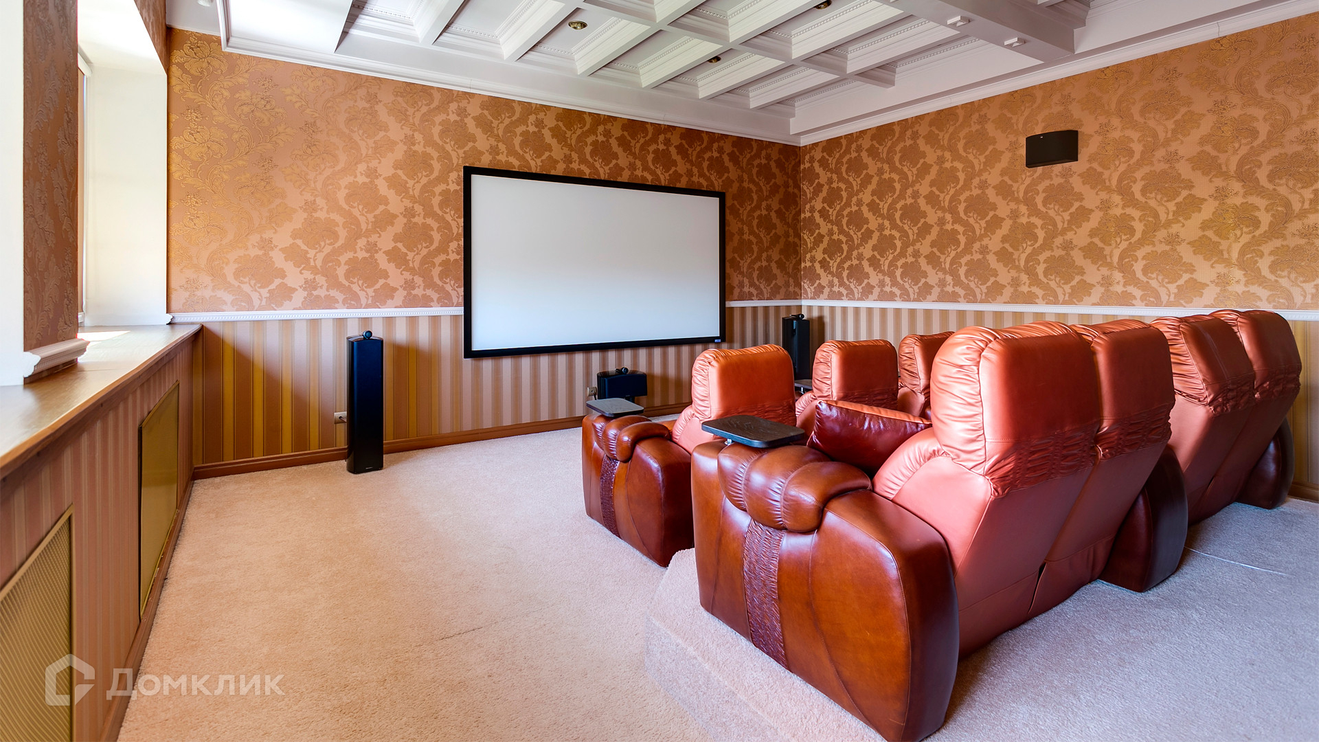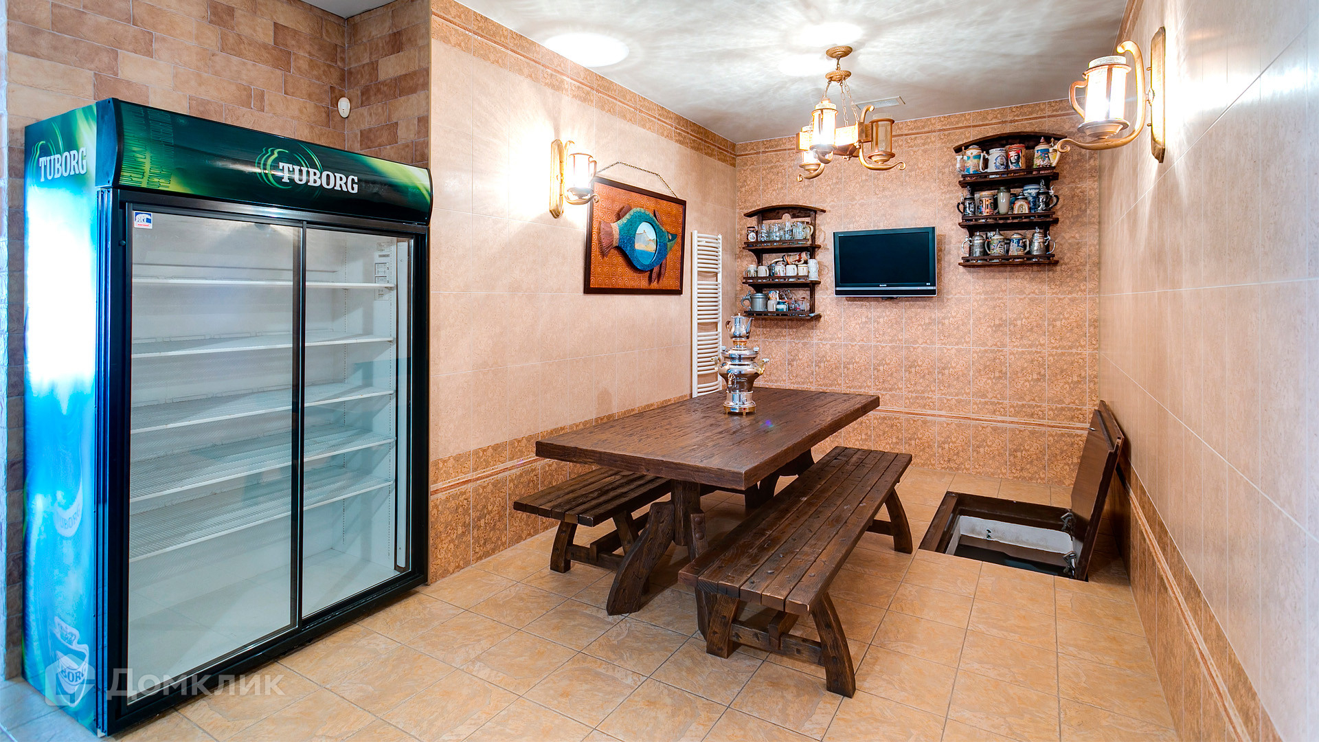 ID 10 375. Сколково. Коттедж площадью 674 м² расположен на полевом участке 16 соток с выходом к пруду. Фасад с большими окнами облицован желтым клинкерным кирпичом. Интерьер в классическом стиле оформлен в светлых оттенках, декорирован лепниной и колоннами с позолотой, зеркалами, витражами и деревом. Дом полностью меблирован, кухня оборудована бытовой техникой Miele. В резиденции спланировали 5 спален, каминный зал, кабинет, тренажерный зал, игровую, кинотеатр, бассейн и сауну. Предусмотрены гараж на 2 машины, блок для персонала, на территории — беседка, кладовая и навес на 2 машины. На участке выполнен ландшафтный дизайн, вымощены дорожки, оборудовано уличное освещение, высажены кустарники.