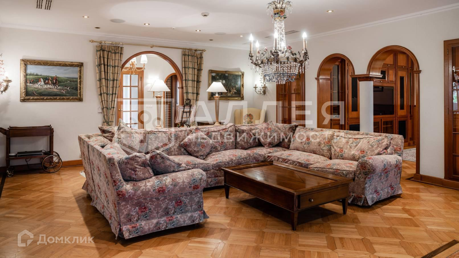Дом: Дом выполнен в классическом стиле. Фасад украшен белыми наличниками, балясинами и арками. Во внутренней отделки использованы предметы декора производителей из Европы. В гостиной есть камин. Из кухни - столовой выход на террасу. В доме выполнены системы кондиционирования и теплых полов.