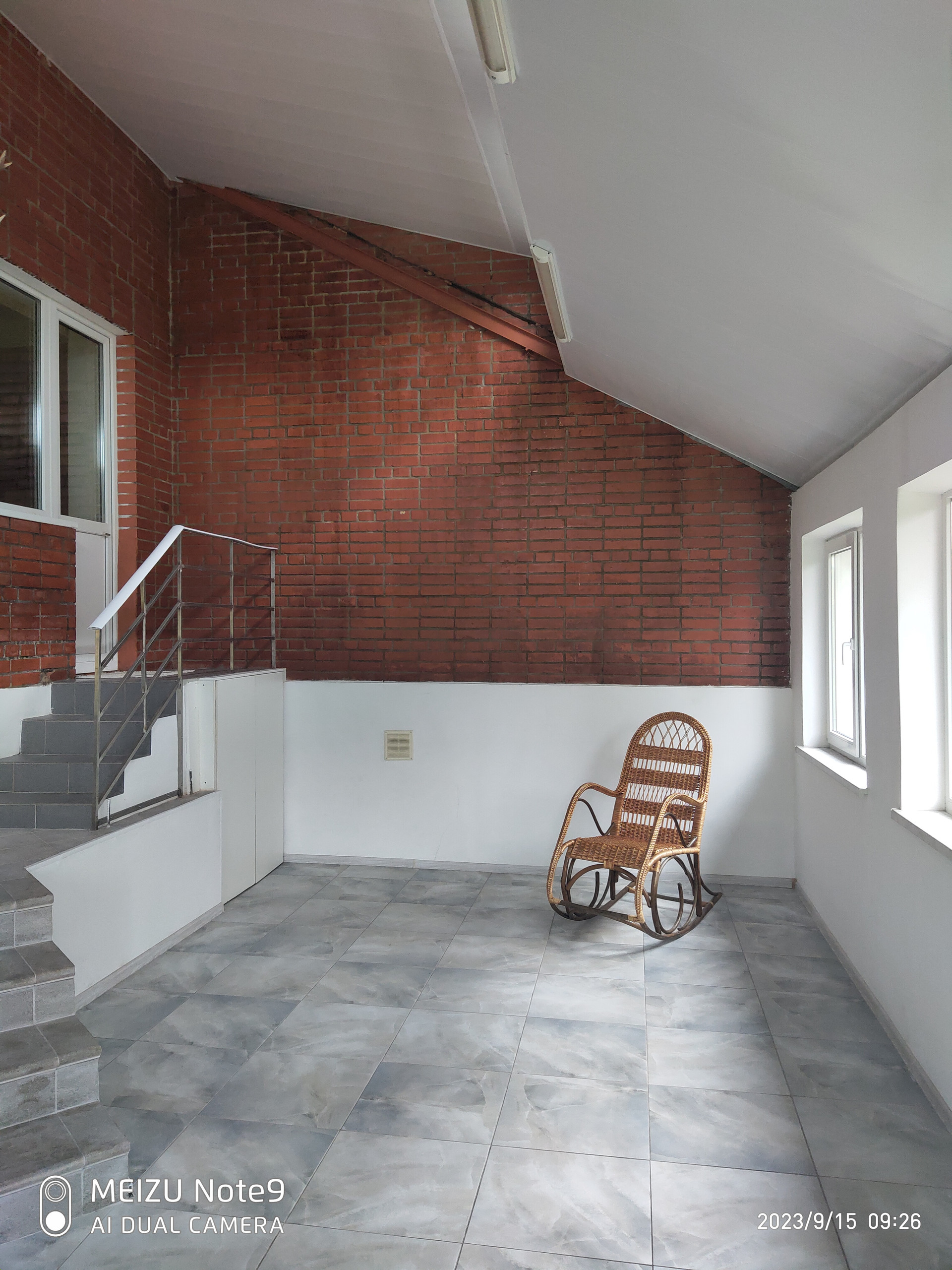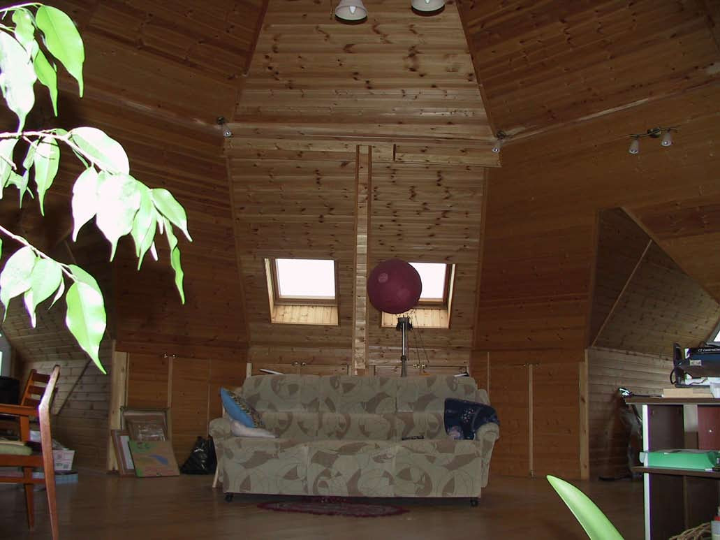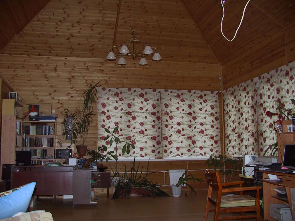 Большой зал на третьем этаже в дачном стиле.