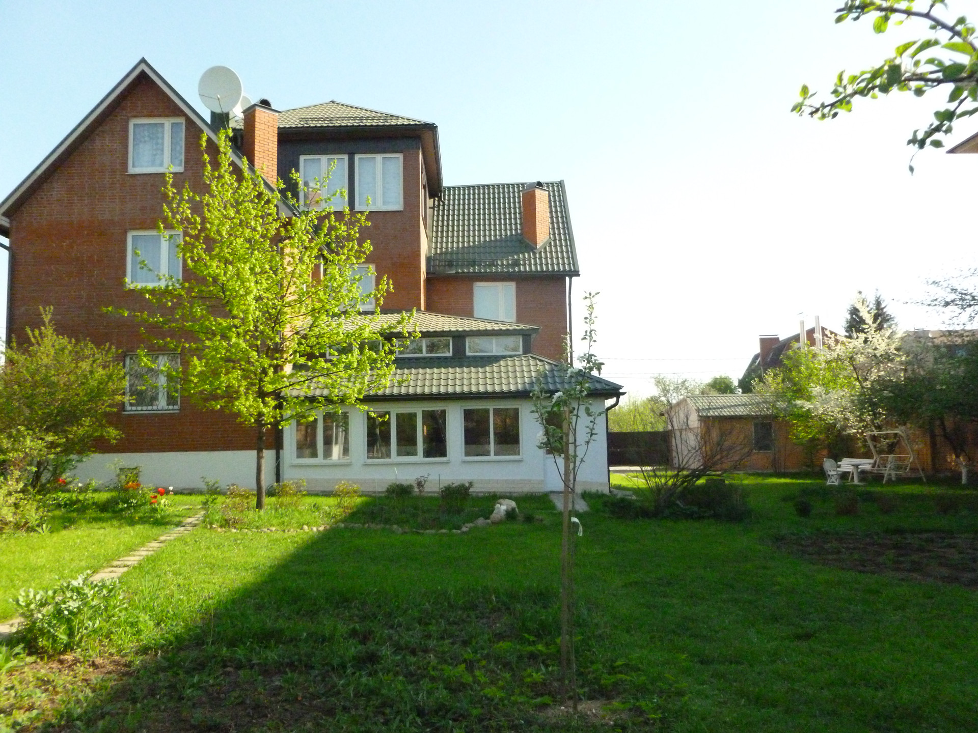 Сколково. Сколковское шоссе,3 км от МКАД. Дом особенно может быть интересен большой семье состоящей из двух поколений или родственников. Семьи рядом и есть возможность личного уединения. Площадь 490 м.кв., участок 16 соток. Дом тёплый, кирпичный, перекрытия монолитные.
