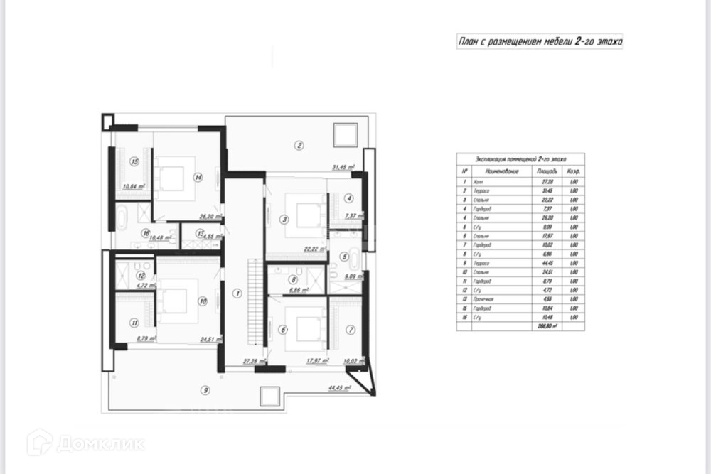 2 этаж: 4 спальни с гардеробными и с/у, постирочная.