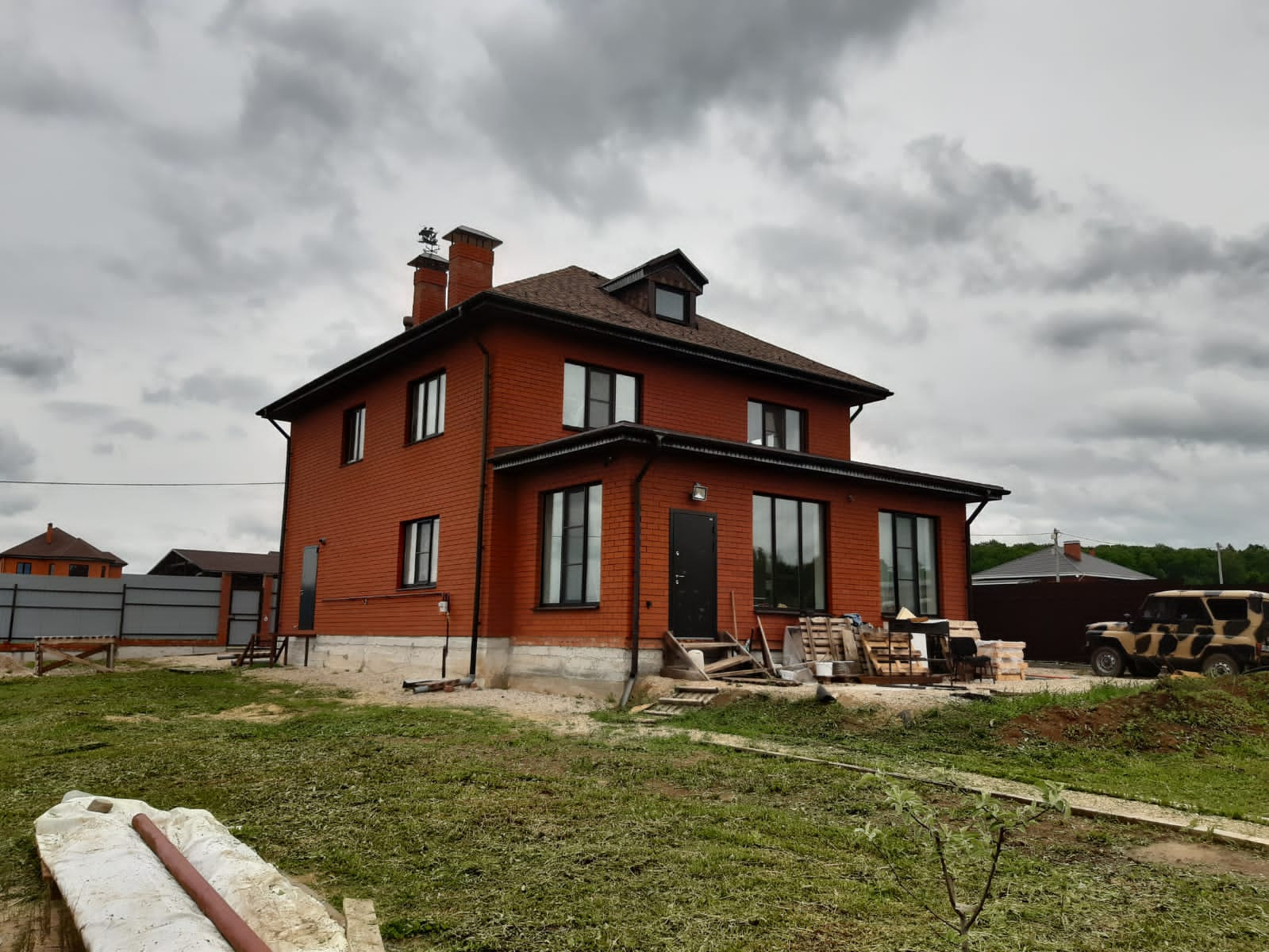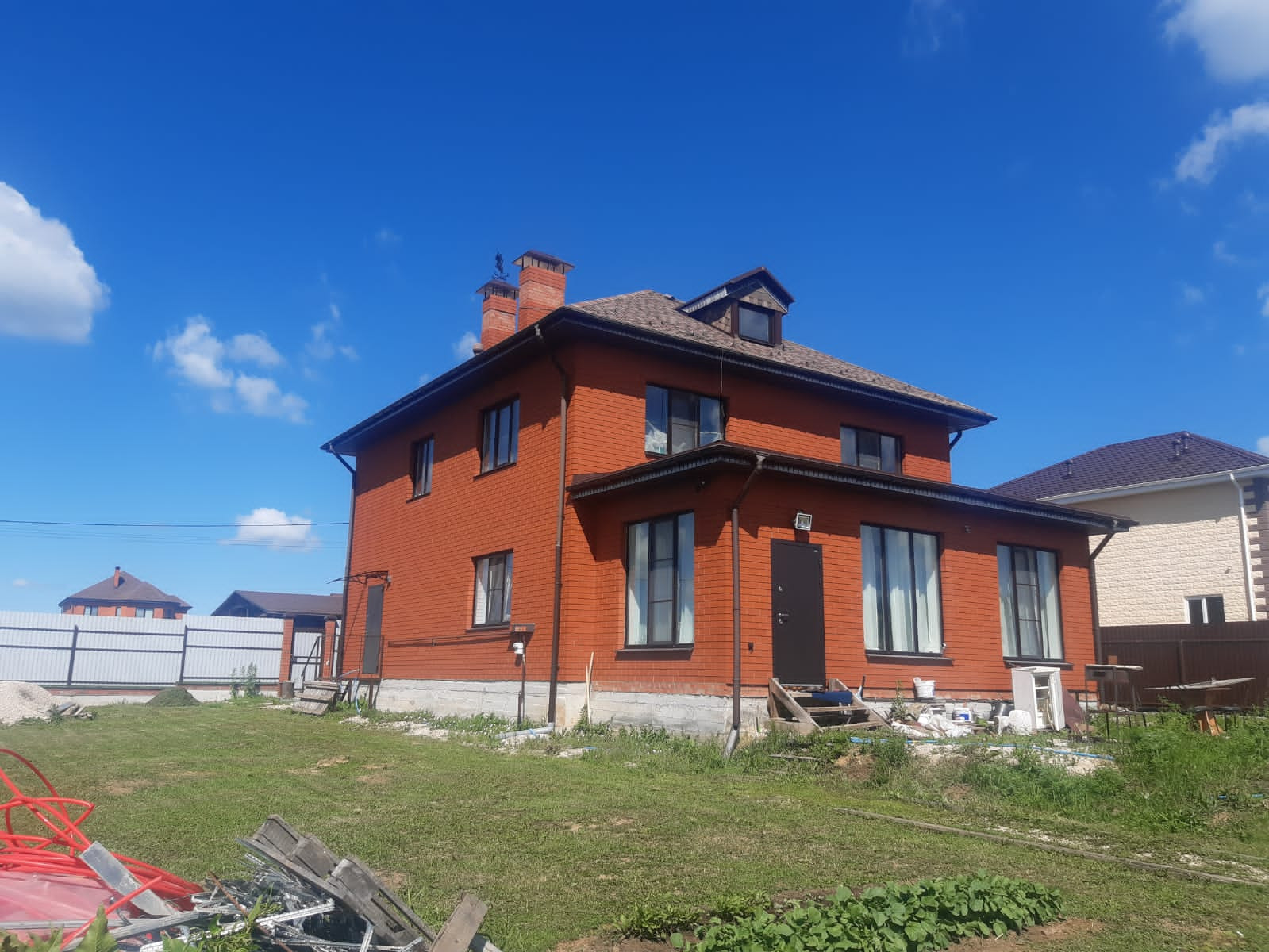 Предлагается к продаже жилой дом, расположенный в экологически чистом районе, в котеджном поселке деревни Скорнево Зареченского городского округа города Тулы, общей площадью 200 кв. метров, построенный качественно, из дорогостоящих материалов. В дом заведены все центральные коммуникации. Фундамент высота 1м 40см, сваи 1м 80см, арматура 18я в фундаменте, стены керамический блок "Браер" 44й, толщина стены 58 см, облицовка- облицовочный кирпич "Браер", окна "Рихау" двойной стеклопакет, 1й этаж-полы плитка девять контуров, с подогревом, стены покрашены, проклеены стеклохолстом, встроенная кухня с встроенной бытовой техникой "Бош", установлены доводчики, электричество 380 ВТ, на посудомоечную машину, духовой шкаф, стиральную машину выведена отдельная линия, интернет Ростелеком. 1й этаж-кухня гостиная 45 кв. метров, гардеробная 6 кв. метров, с/у 6 кв. метров -душевая +туалет, комната с панорамными окнами 35 кв. метров, болерная 7 кв. метров - установлен котел " Вайсман" (Германия), бойлер на 200 литров, узел теплых полов, резервный электрокотел 12 КВТ, все насосное оборудование. Лестница на второй этаж, везде проходные выключатели, в дом три входа, двери "Торекс" с терморазрывом, натяжные потолки. 2й этаж- две спальни по 20 кв. метров, 3я- 17 кв.метров с гардеробной 6 кв. метров, с/у с ванной 6 кв. метров и теплым полом, стены оштукатурены, проводка проведена, под чистовую отделку, все материалы для отделки есть. Участок 14 соток в собственности, отмежован, огорожен забором по всему периметру из профлиста, высотой 2 метра, с откатными воротами. Скважина - 50 метров, колодец - 8 метров, выгребная яма (септик) 1,5 метровые кольца, в 1м бетонное дно. Под забором бетонная лента с двух высоких сторон. Сарай каркасный 6x3, насаждения: яблони, груши, черешня, смородина, крыжовник, курятник с вольером, вольер для собаки 1,5x3 метра, сарай 1x1,5 метра. В эту стоимость входит полностью отделка второго этажа под ключ! Парковка и заезд на территорию и вокруг дома положен геотекстиль и засыпан щебнем. Вокруг дома подсветка из лампочек, кровля мягкая, сделана по полной технологии с подкладочным ковром, установлена фановая труба, чердак - утепление 20 см. Подъезд до дома отсыпан щебнем. Дом строили для себя, не на продажу, до остановки 10 минут хоть-бы (маршрут 66), тихое красивое место, в шаговой доступности лес, пруды, рыбалка. Очень красивая природа. Показ в любой день по договоренности. Рассмотрим различные варианты оплаты. Помощь в оформлении ипотеки!