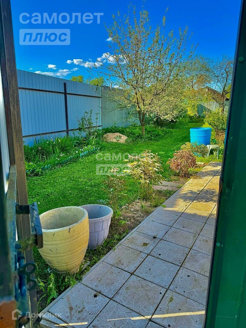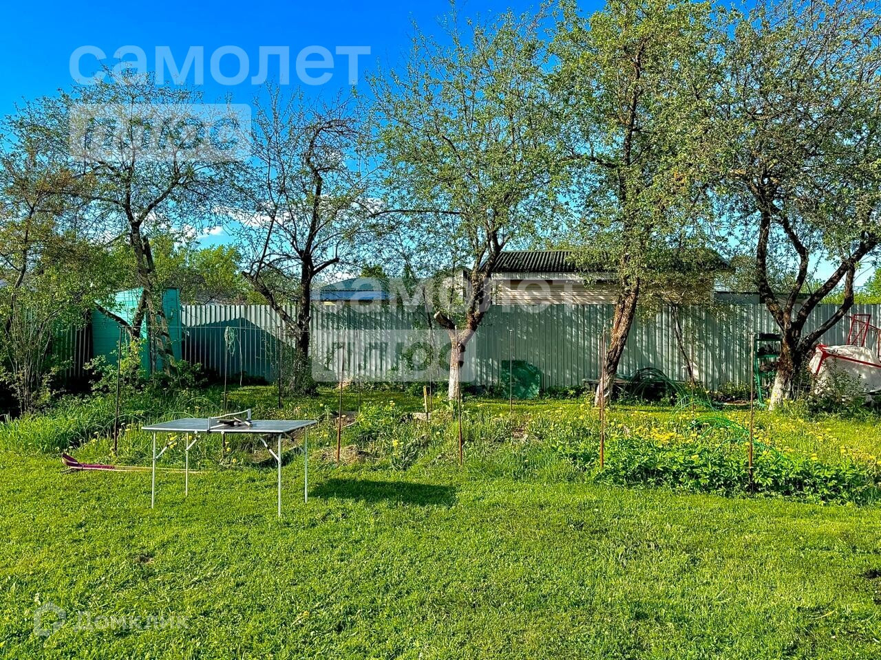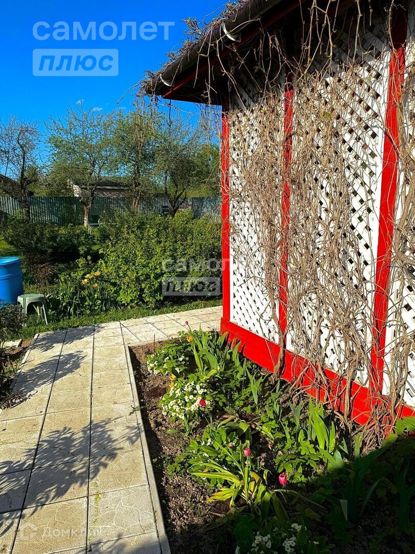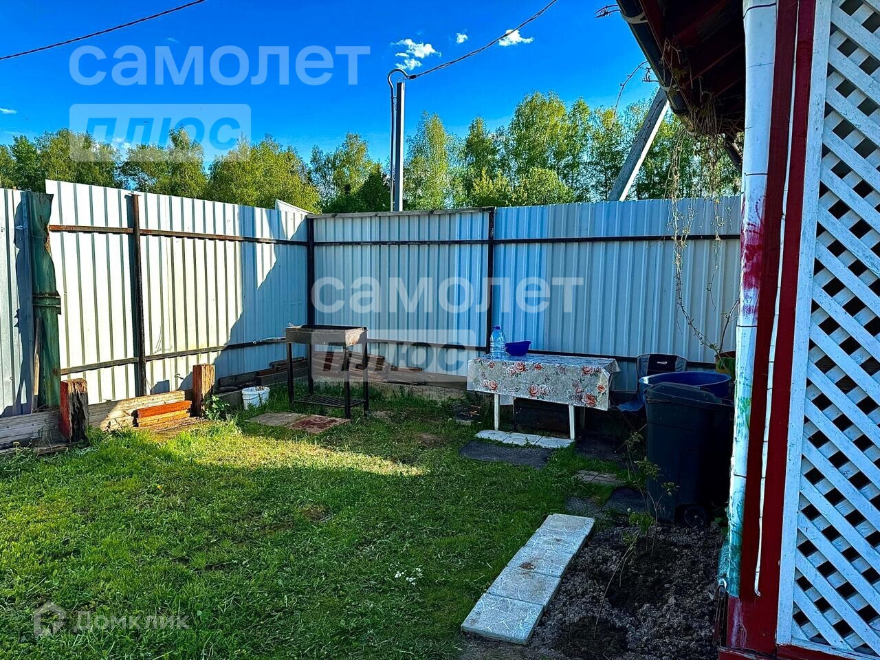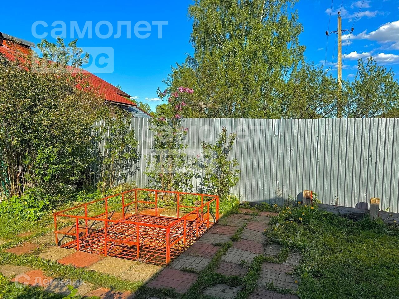 На Участке построена беседка, есть кустарники и деревья.