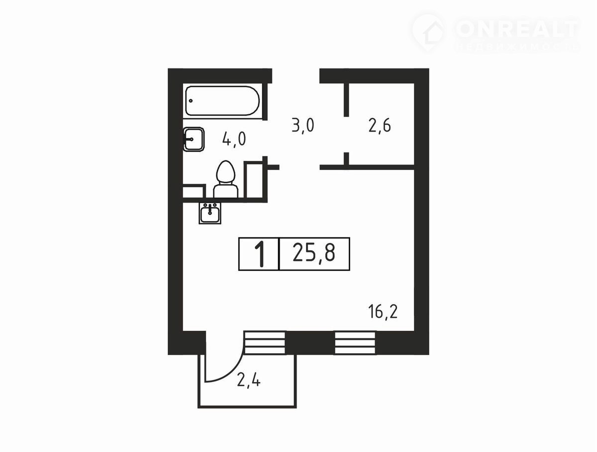 Общая площадь 25.8 м2