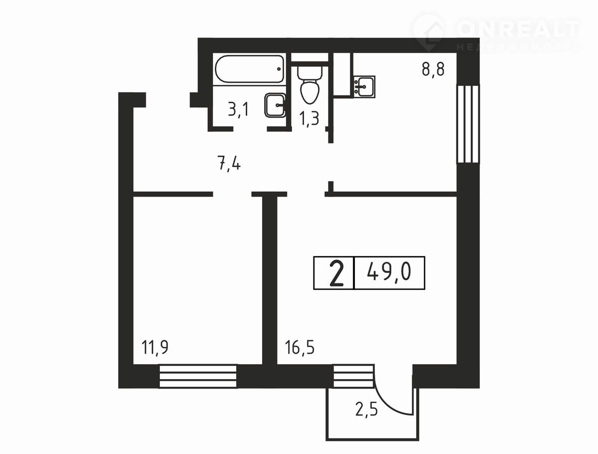 Общая площадь 49 м2