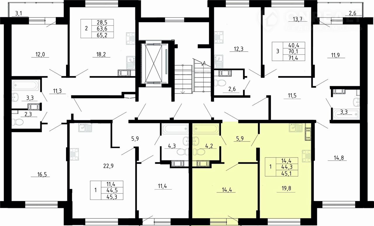 Общая площадь 44.3 м2
