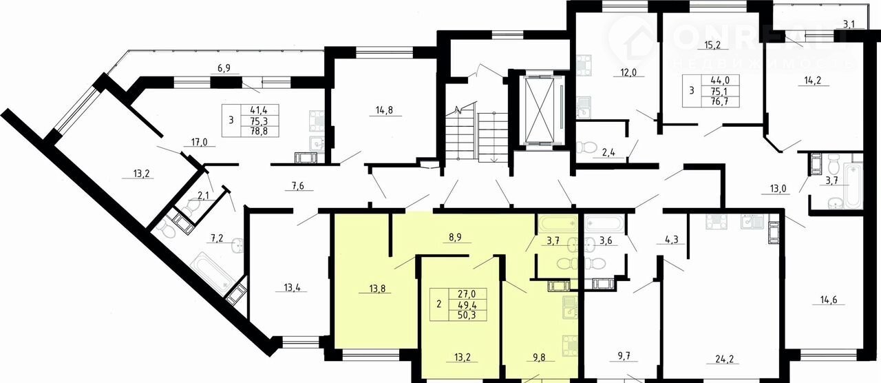 Общая площадь 49.4 м2