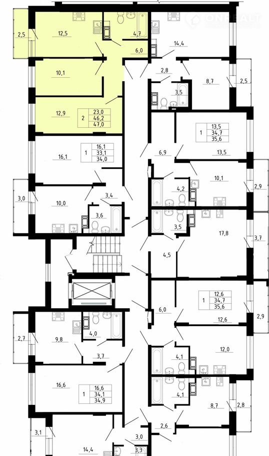 Общая площадь 46.2 м2