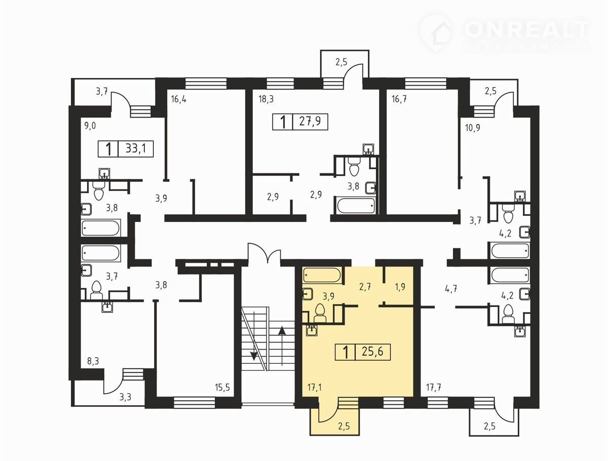 Общая площадь 25.6 м2