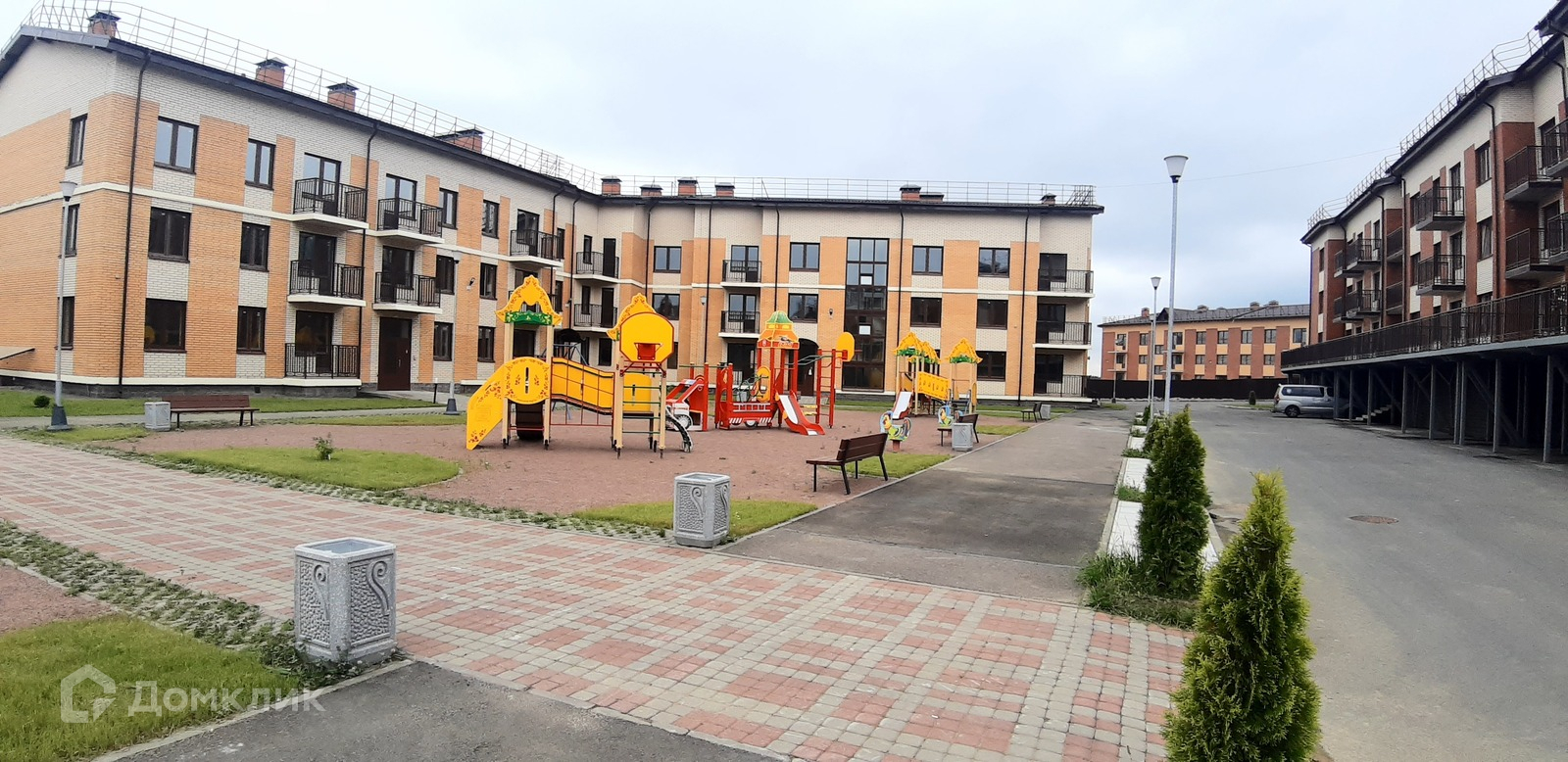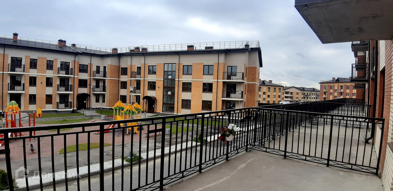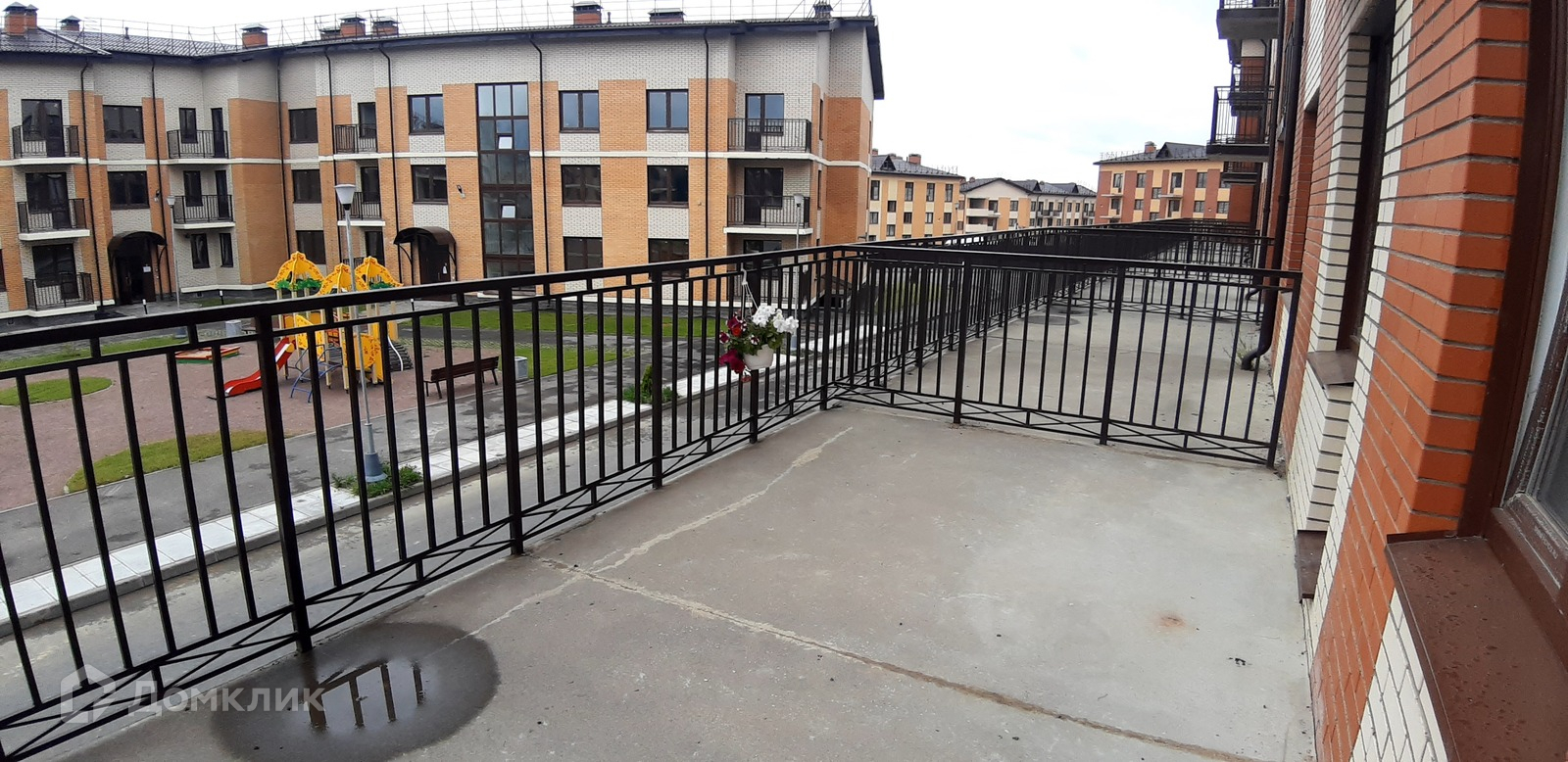 Квартира расположена на 1 этаже 3 этажного дома. Высокий первый этаж, внизу можно поставить машину, посмотрите на фото. Помещение под гардеробную- 2.9 кв.м. Сан.узел - 3.9 кв.м. Огромная терраса - 17.3 кв.м. Можно застеклить и утеплить - использовать в качестве дополнительной  комнаты.   Отделка предчистовая. Окна выходят в просторный двор. Большая детская площадка.