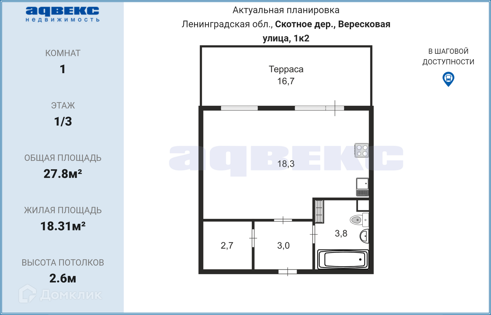 Общая площадь 27.8 м2