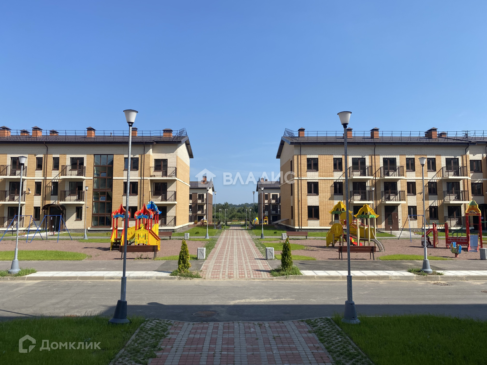 Благоустроенные в едином стиле дворы с освещением, оборудованными детскими площадками и местами для отдыха. На территории рядом с ЖК строится торговый комплекс.