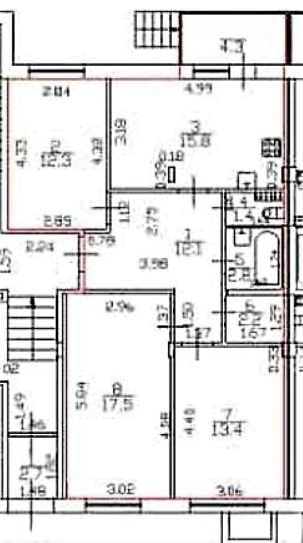 Квартира очень светлая, просторная, расположена на первом этаже, из лоджии выход в собственный садик, окруженный кустарником. Очень удобная планировка: большой квадратный холл 12 кв. м., изолированные комнаты 17,5+13,4+12,3, кухня 16 кв. м. с явно выраженной обеденной зоной. Кухню можно объединить с соседней комнатой. Из кухни - застекленная лоджия 4 м2 с выходом во двор. Раздельный санузел, кладовка. Пред чистовая отделка во всей квартире, с/у отделаны плиткой.