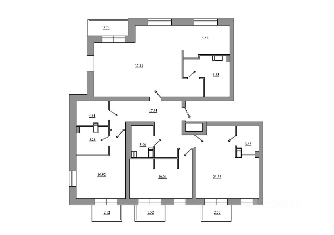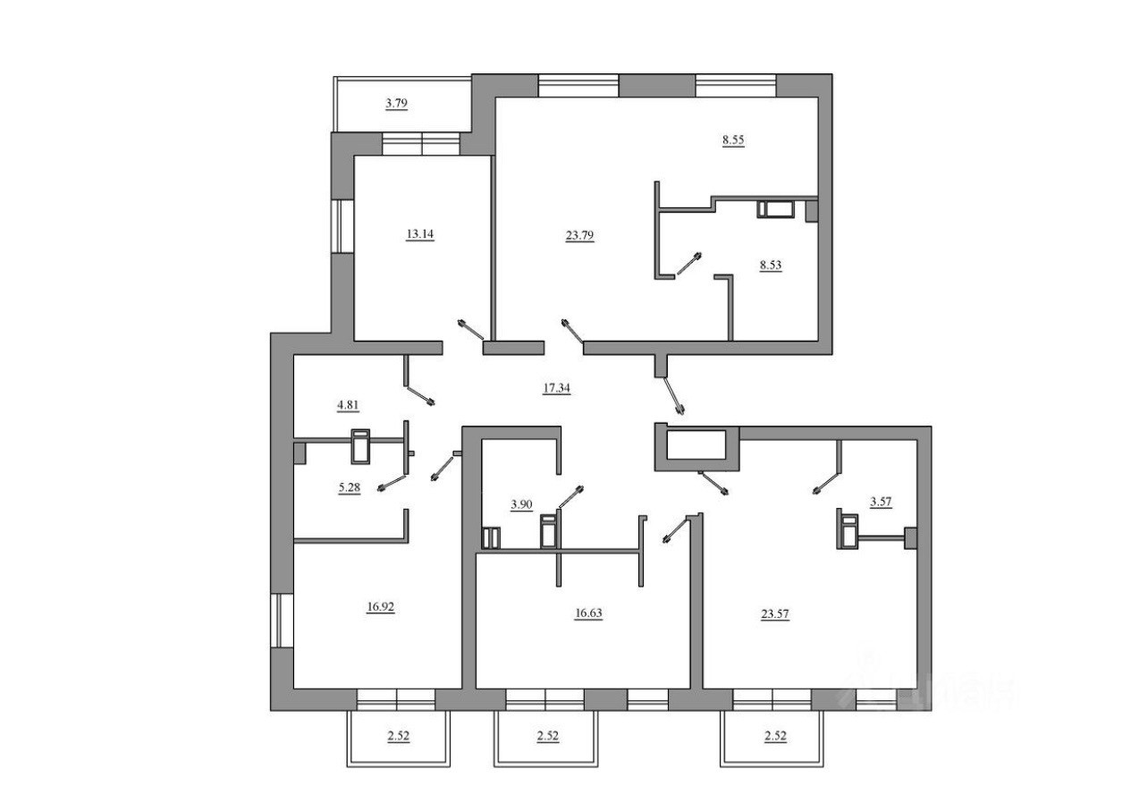 + Четыре балкона, которые не учтены в площади квартиры.