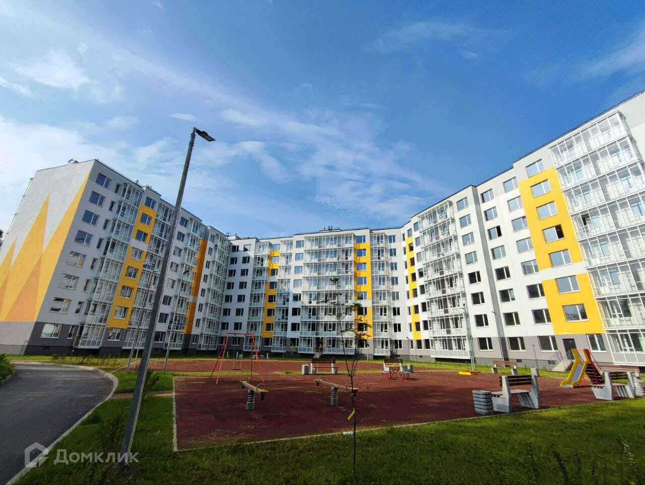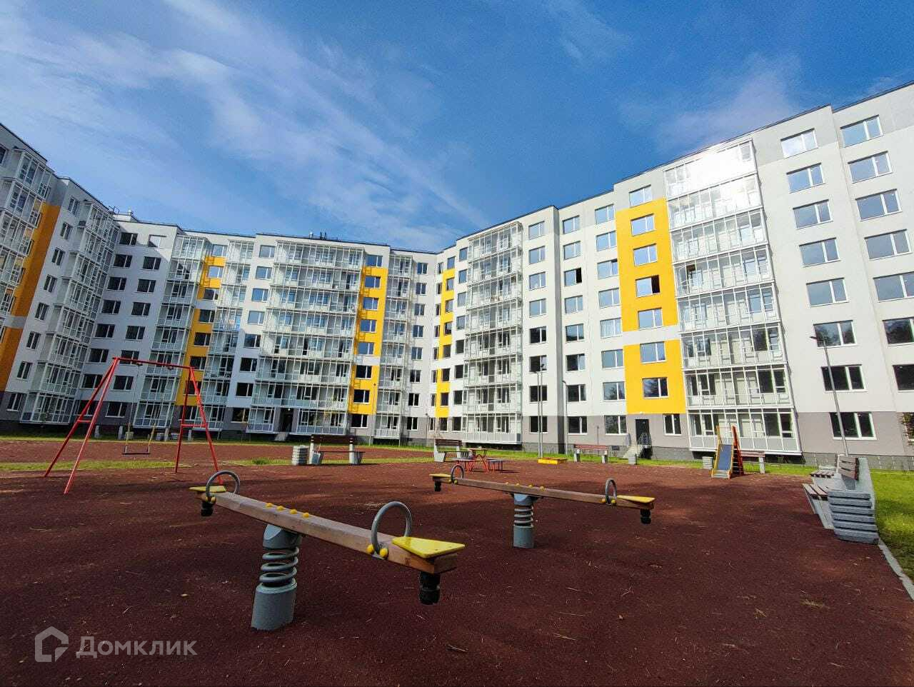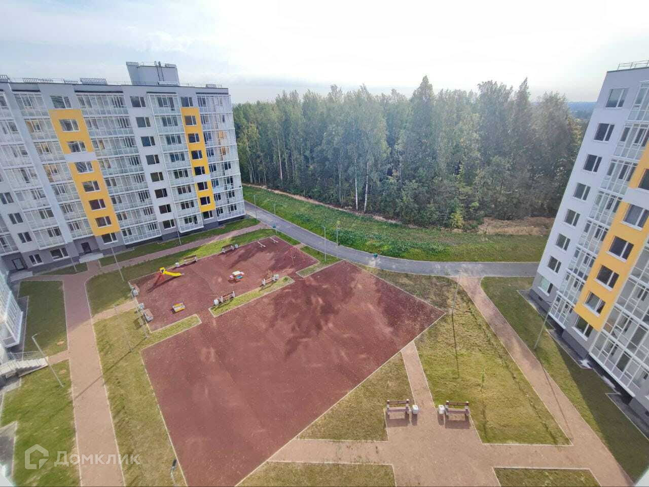 С чистовой отделкой (таких квартир весьма немного в этом доме, "въезжай и живи") обзорный 8 этаж с видом на обустроенную детскую площадку и зелёный лес.