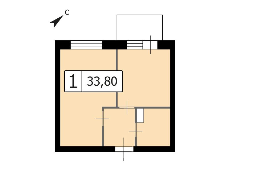 Общая площадь 34.1 м2