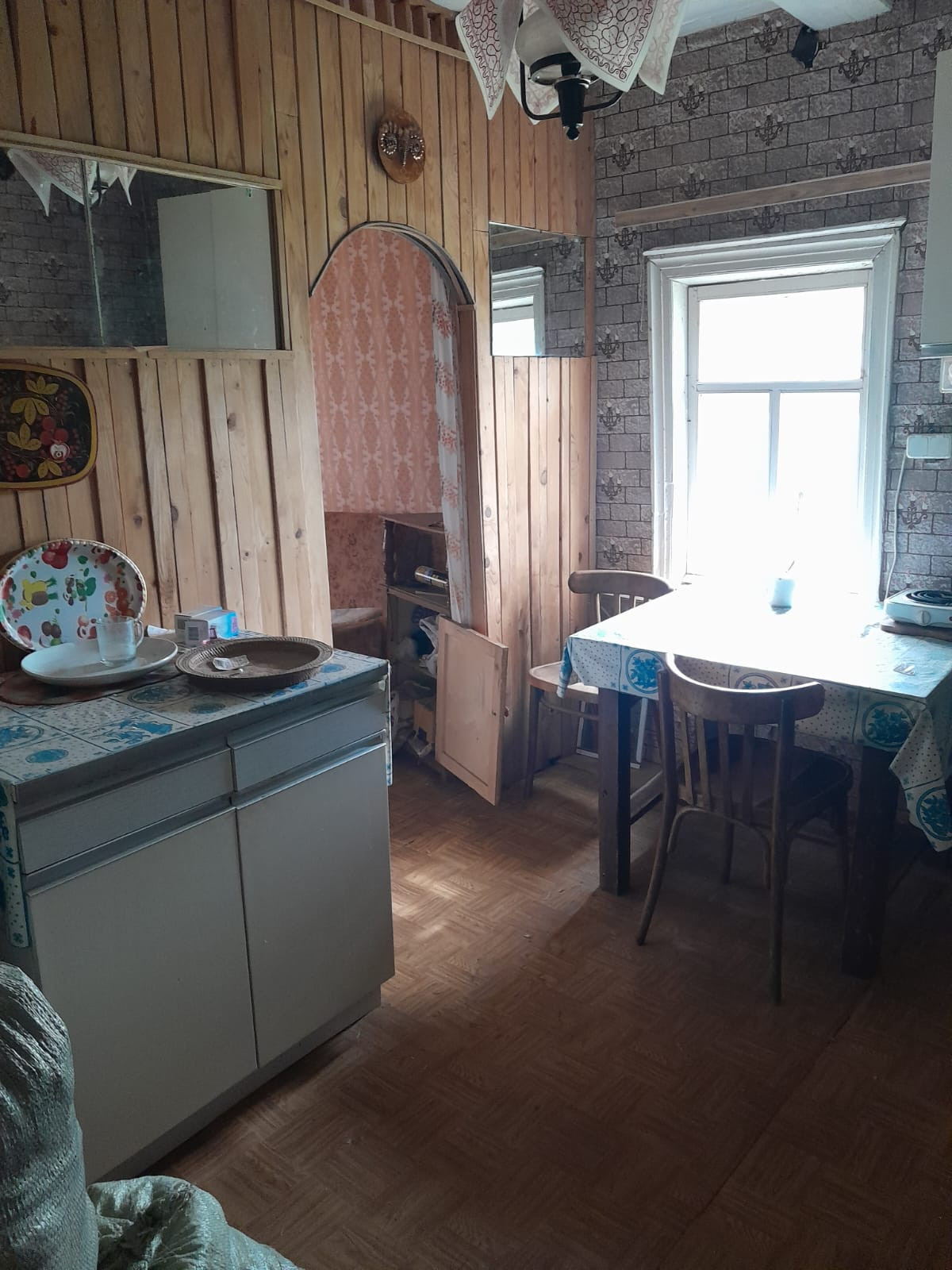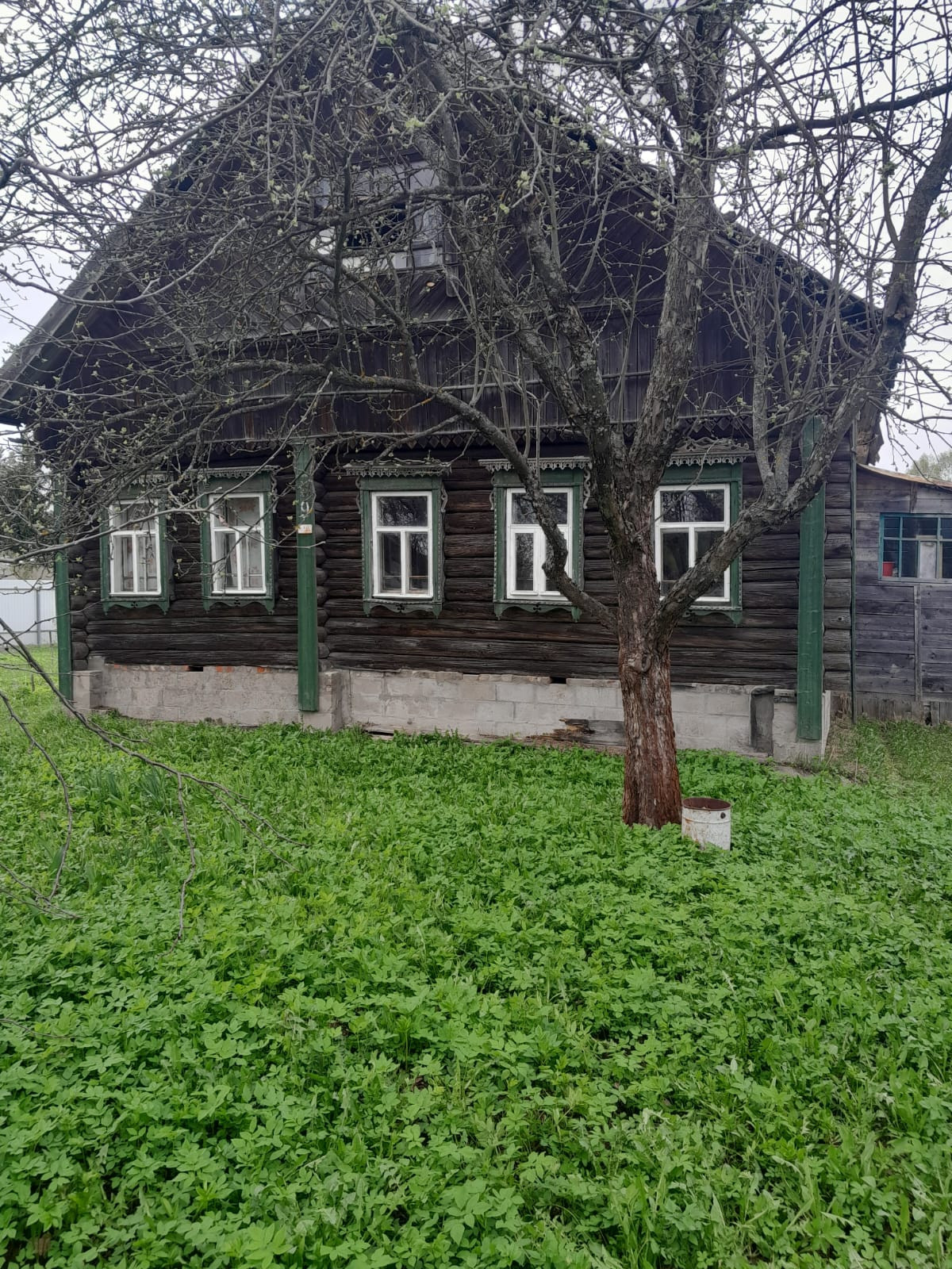 Дом с участком . Печка рабочая, материал стен бревно, новый забор, вода завезена в дом на зиму надо отключать, колодец на улице. Зимой несколько домов живут, дом требует обихода, внутри все запущено . Им много лет не занимались , заехать и жить круглогодично не получится . Подвал промерзает зимой ,  в окна дует , кого устроят такие условия  - может рискнуть . Отличное место для отдыха летом. Крыша не течёт. Яблони на участке. За за домом речка .