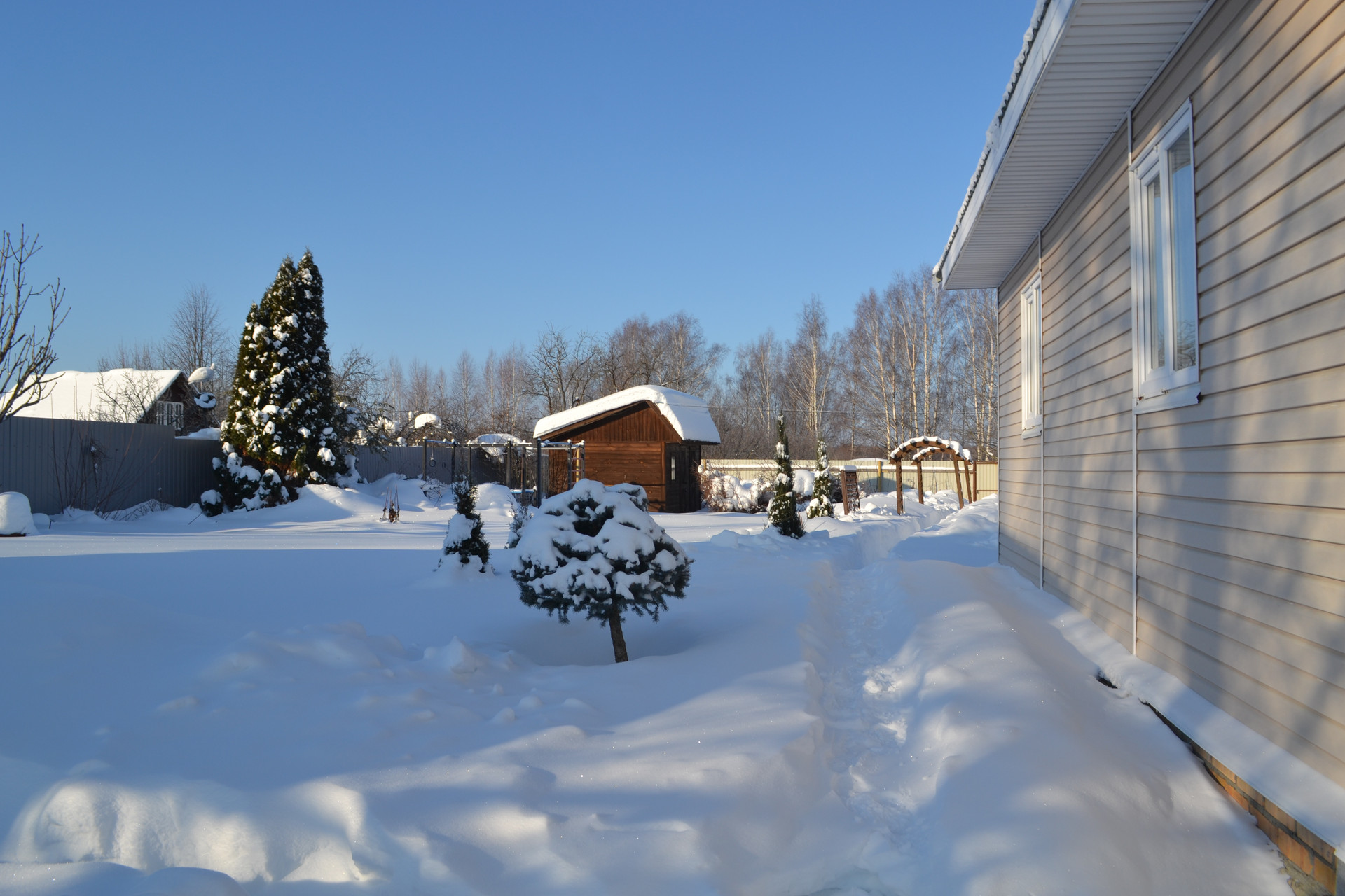 Дом каркасный (2020 года постройки), фундамент блоки, крыша - профнастил, установлены окна ПВХ, изнутри стены обшиты блок хаусом. Дом пользовались как дачей , с весны до поздней осени, но при строительстве дома закладывалась толщина стен такая, чтобы была возможность для подходит для круглогодичного проживания. Также есть большая веранда. Площадка перед домом дорожки на территории участка выложены плиткой.