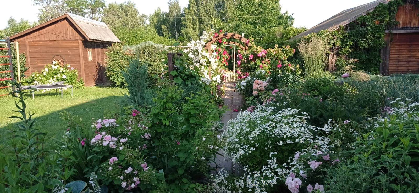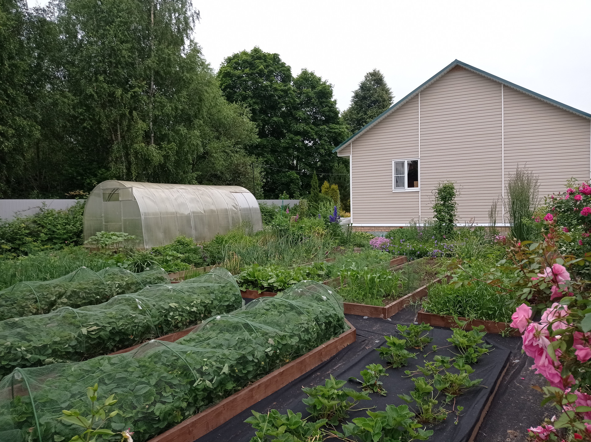 Участок имеет два раздела: на одной части, расположен сам дом, гостевой домик, баня с верандой? увитой виноградом, мангальная зона, зона бассейна (в данное время не функционирует)), хозблок, теплица, современные !! грядки и конечно же плодово-ягодные насаждения ( яблони, груши, сливы, смородина, жимолость, крыжовник, клубника, малина, виноград), культурные кустарники и вечнозеленые деревья, клумбы с красивейшими цветами. Сад благоустроен и радует глаз в любое время года!