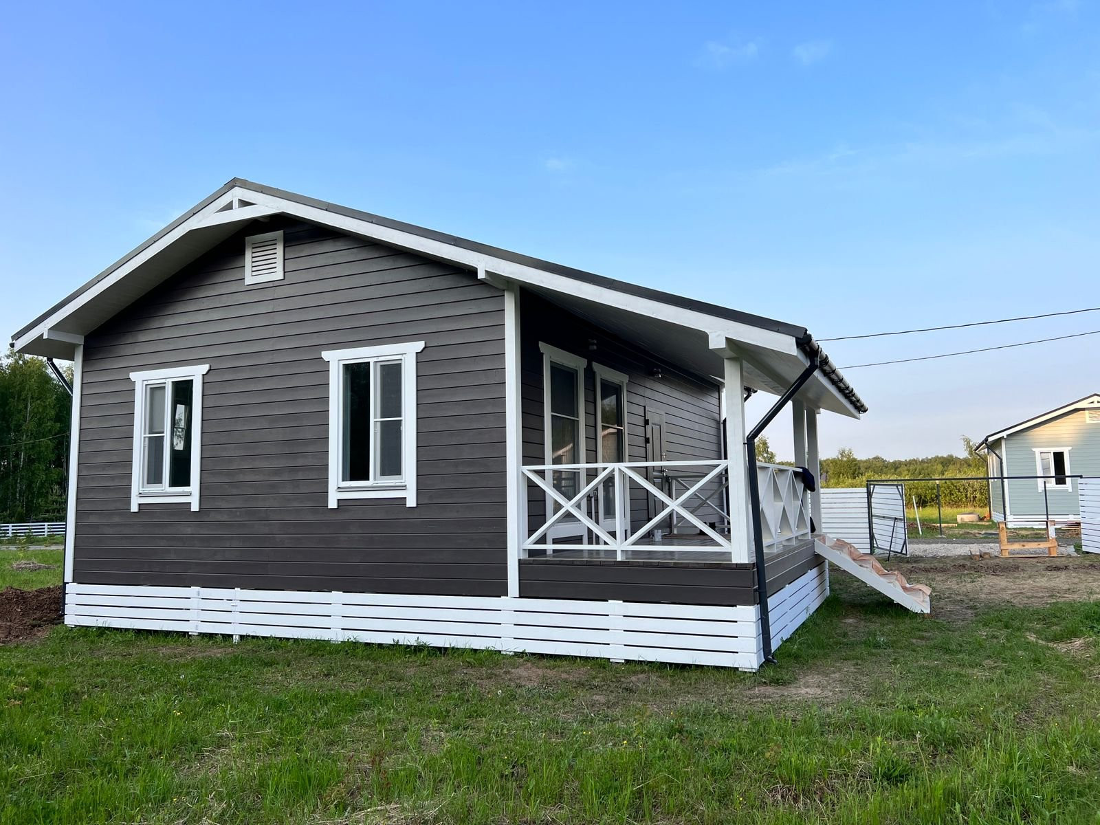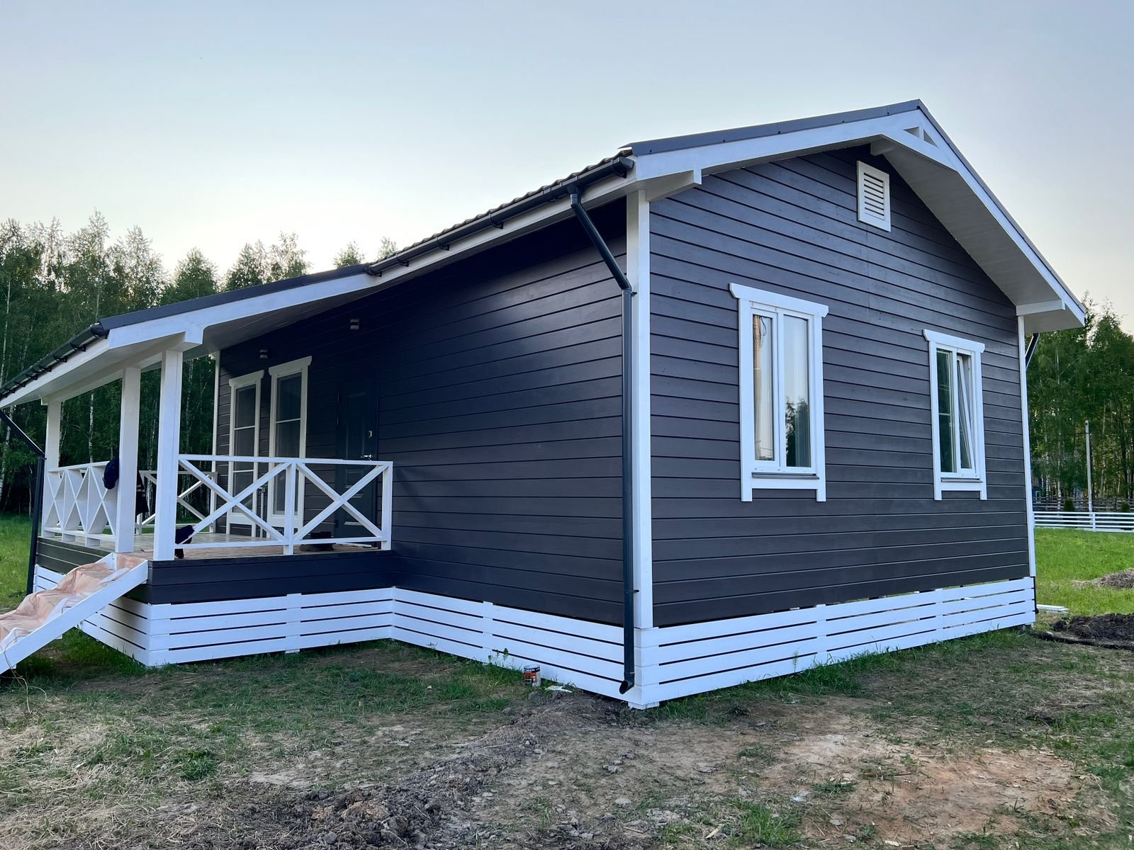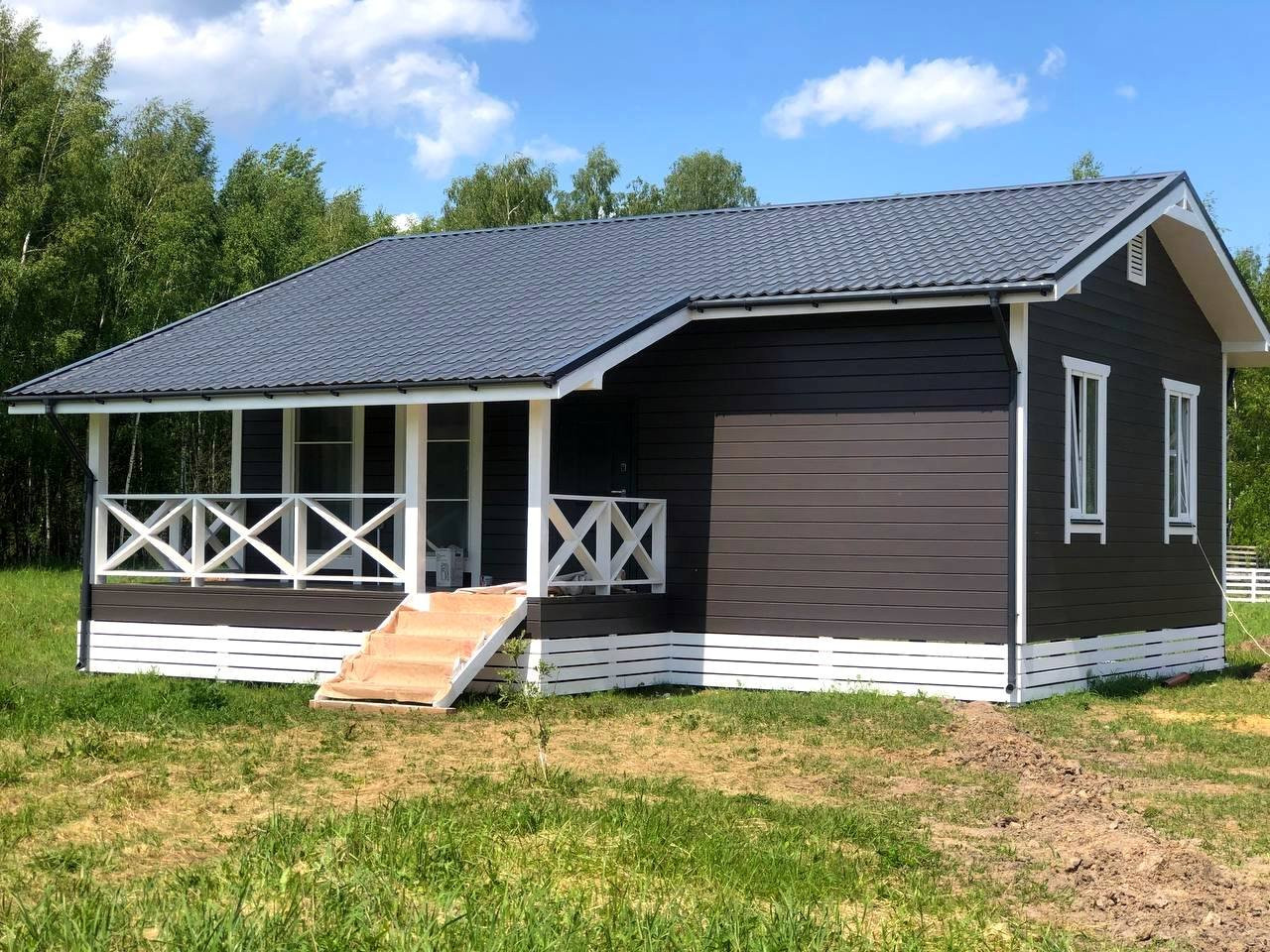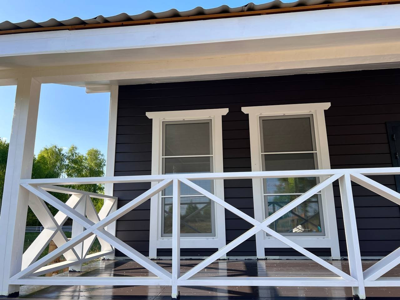 Терраса и ступени выполнены из ангарской сосны 40х150 покрытые в 2 слоя краской для террас.