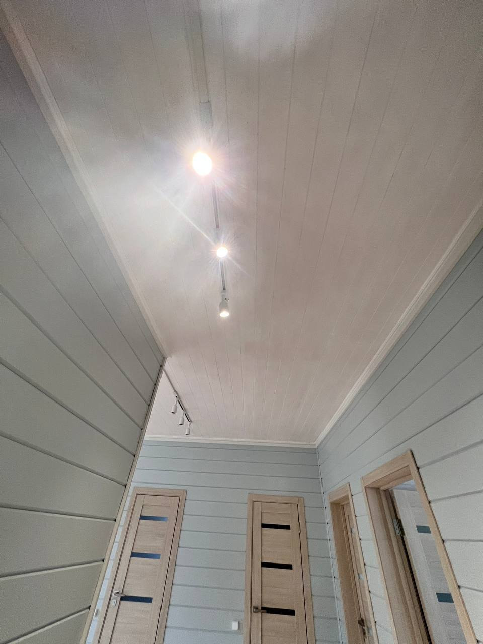 Освещение полностью светодиодное. В зале и коридоре треки в спальнях люстры.