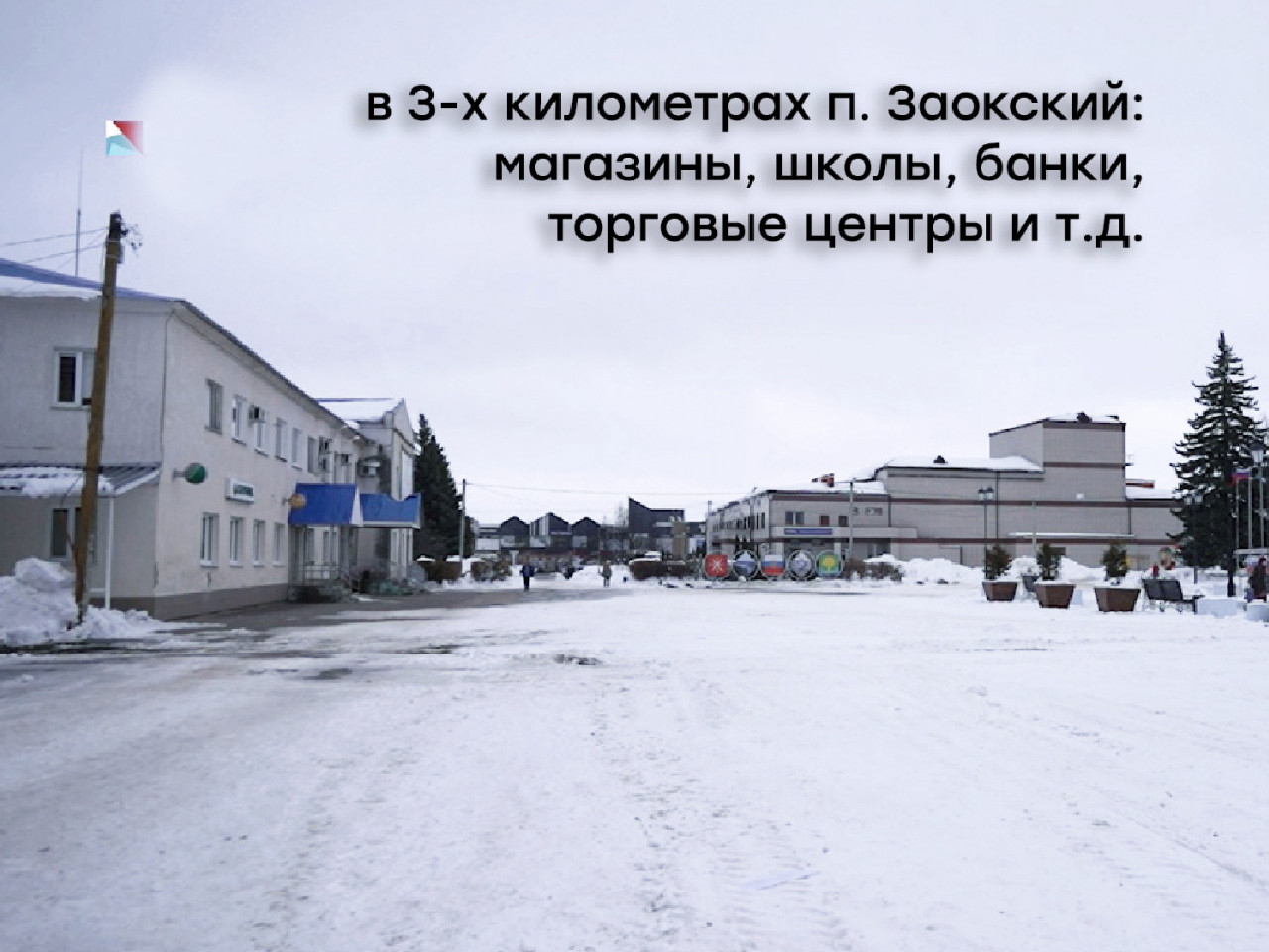 В 3-х км п. Заокский, где есть аптеки, рынок, магазины и всё необходимое.
