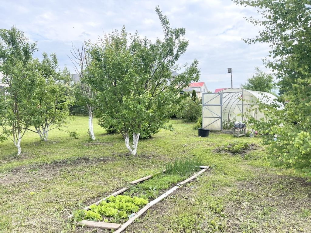 Участок 10 соток, огорожен по периметру, ровный, сухой. Участок очень ухоженный, с различными плодовыми, кустарными и садовыми насаждениями.