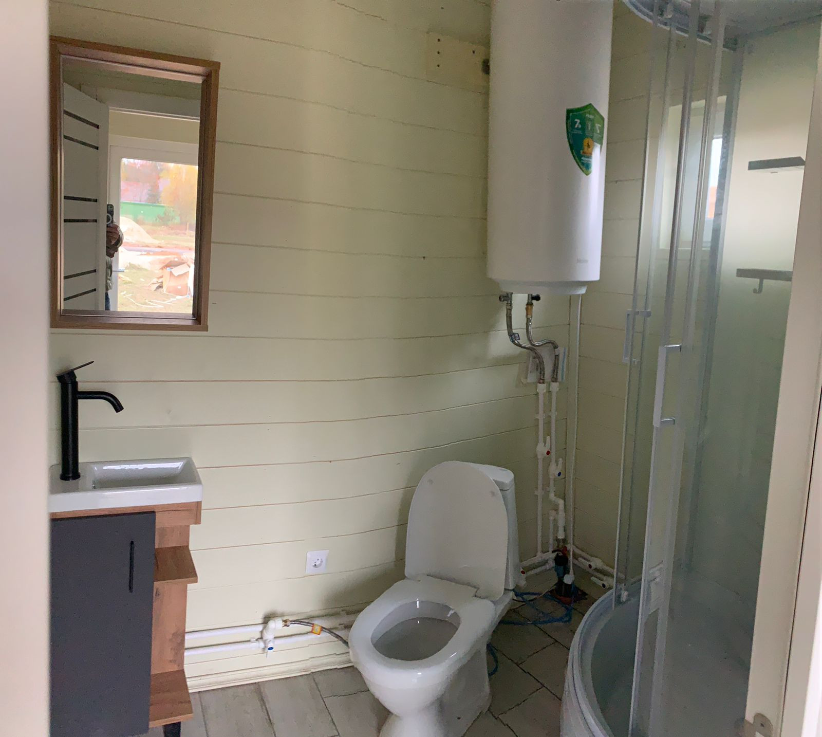 Коммуникации заведены в дом: электричество, отопление конвекторами. В доме есть: кухня-гостиная уже полностью оборудованная, спальня и совмещенный санузел.