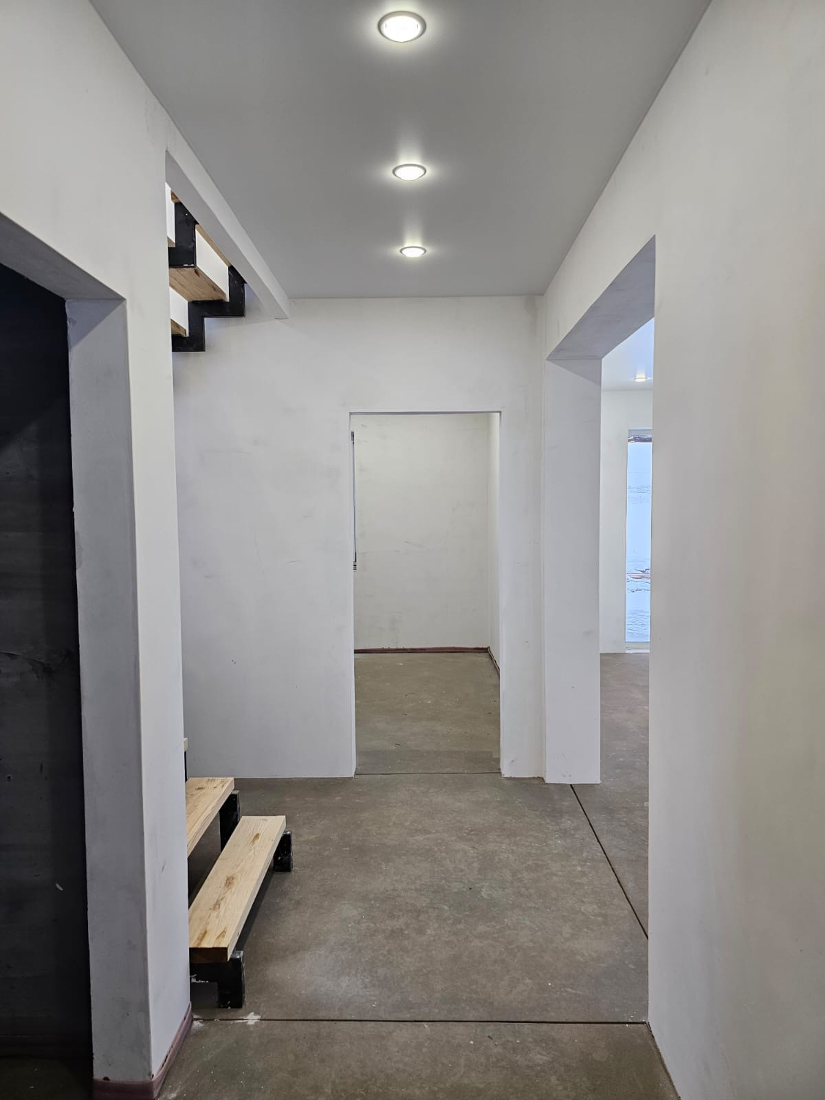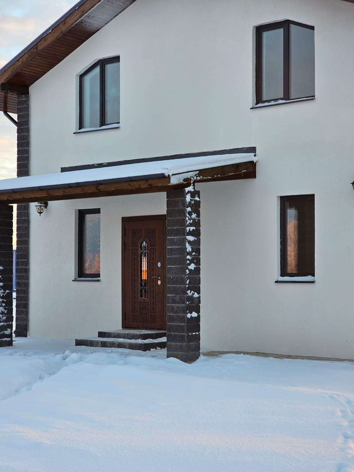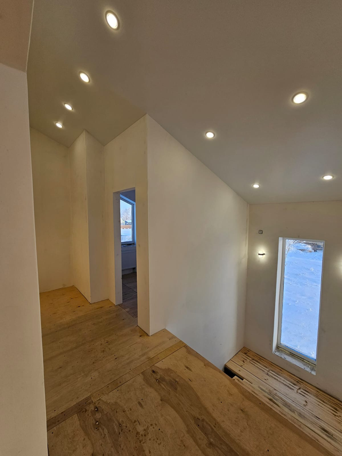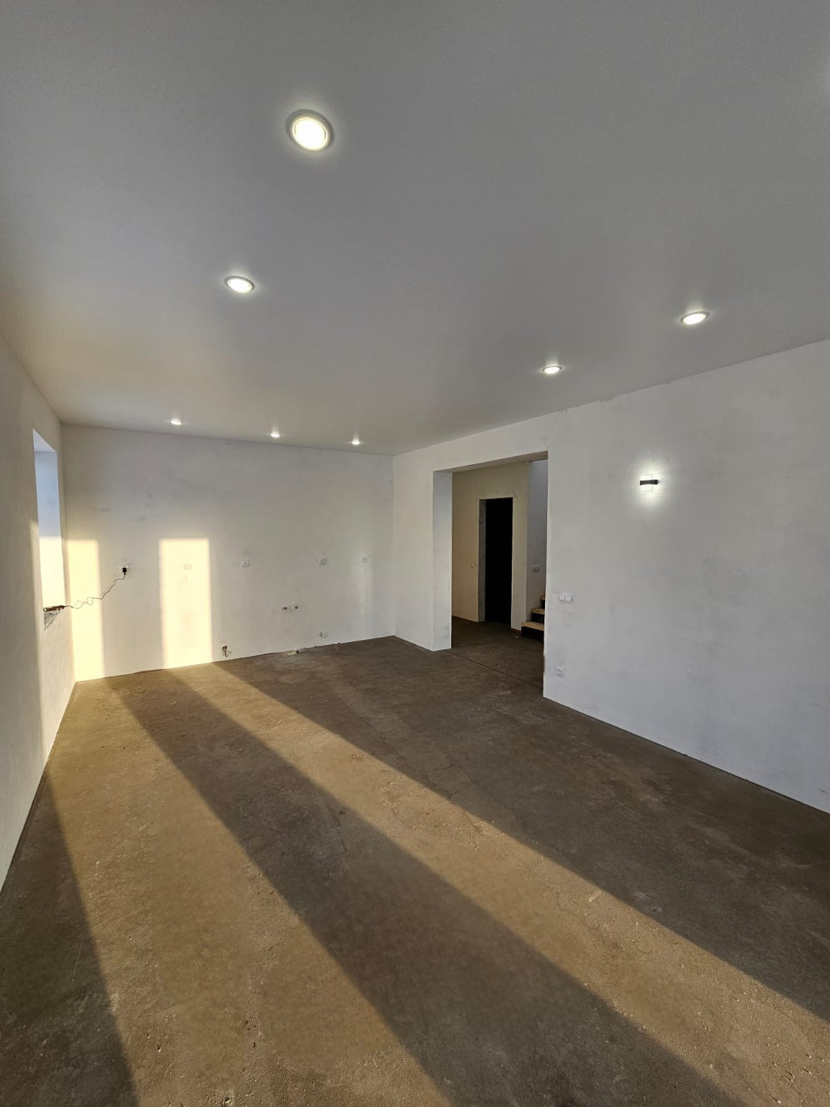 Водоснабжение и электрика разведены по точкам, розетки,выключатели установлены,натяжные потолки во всем доме.