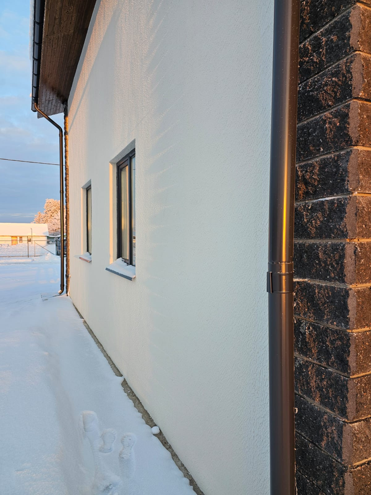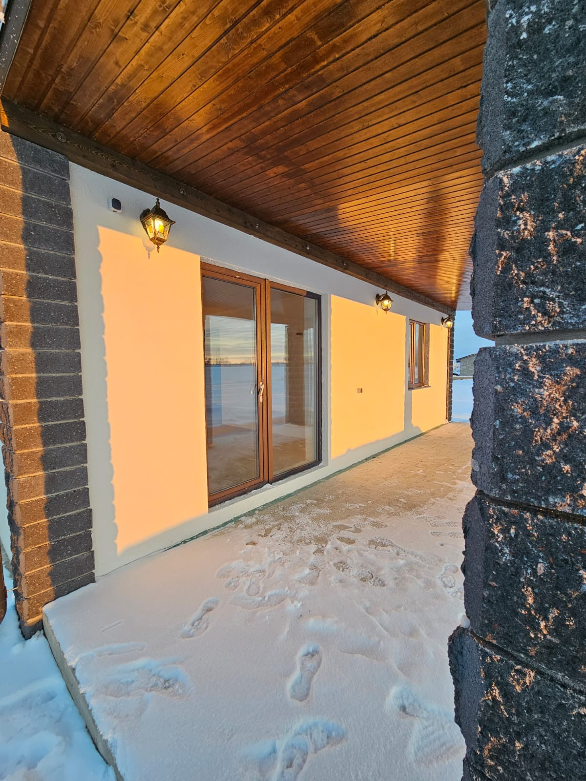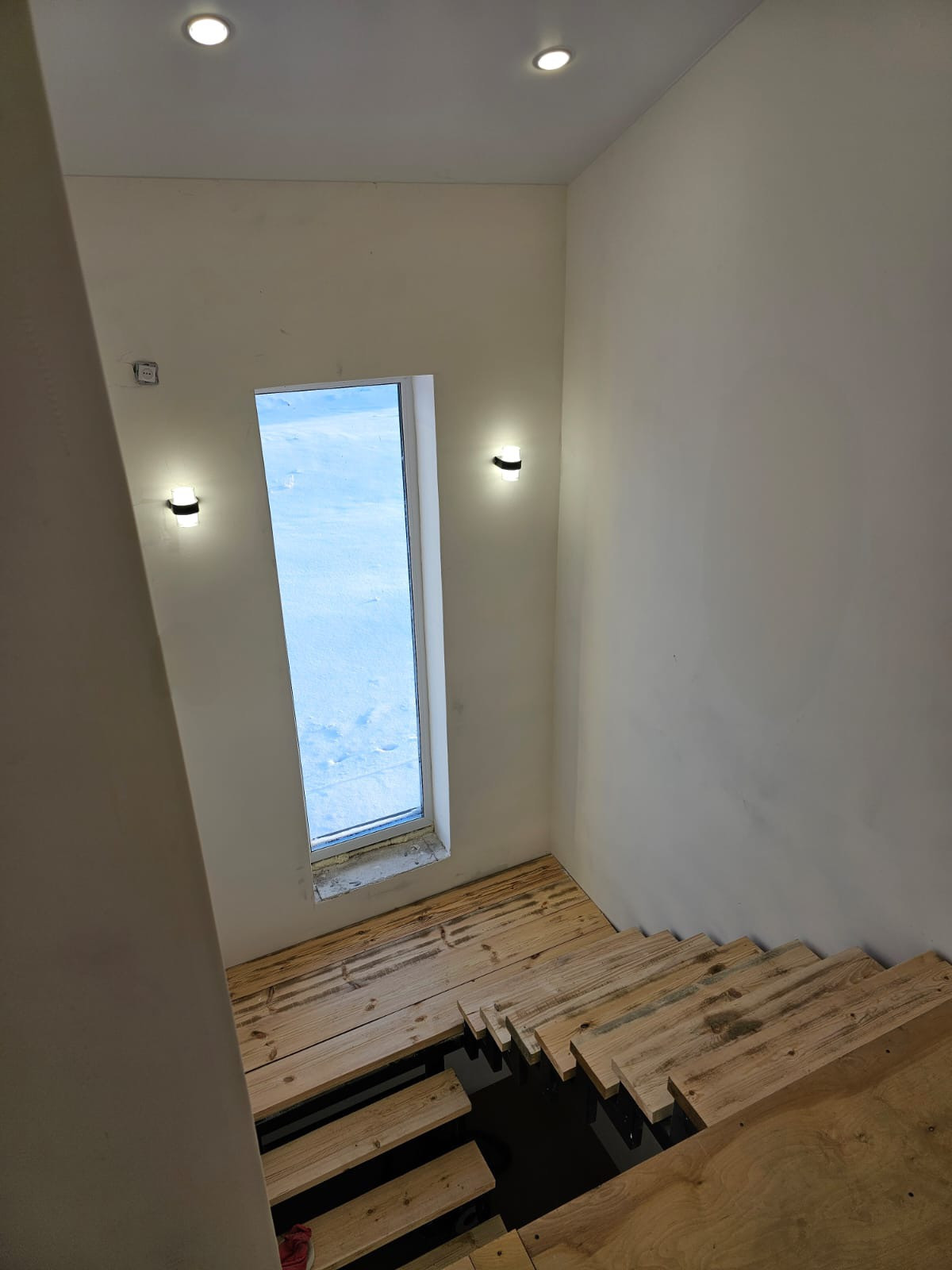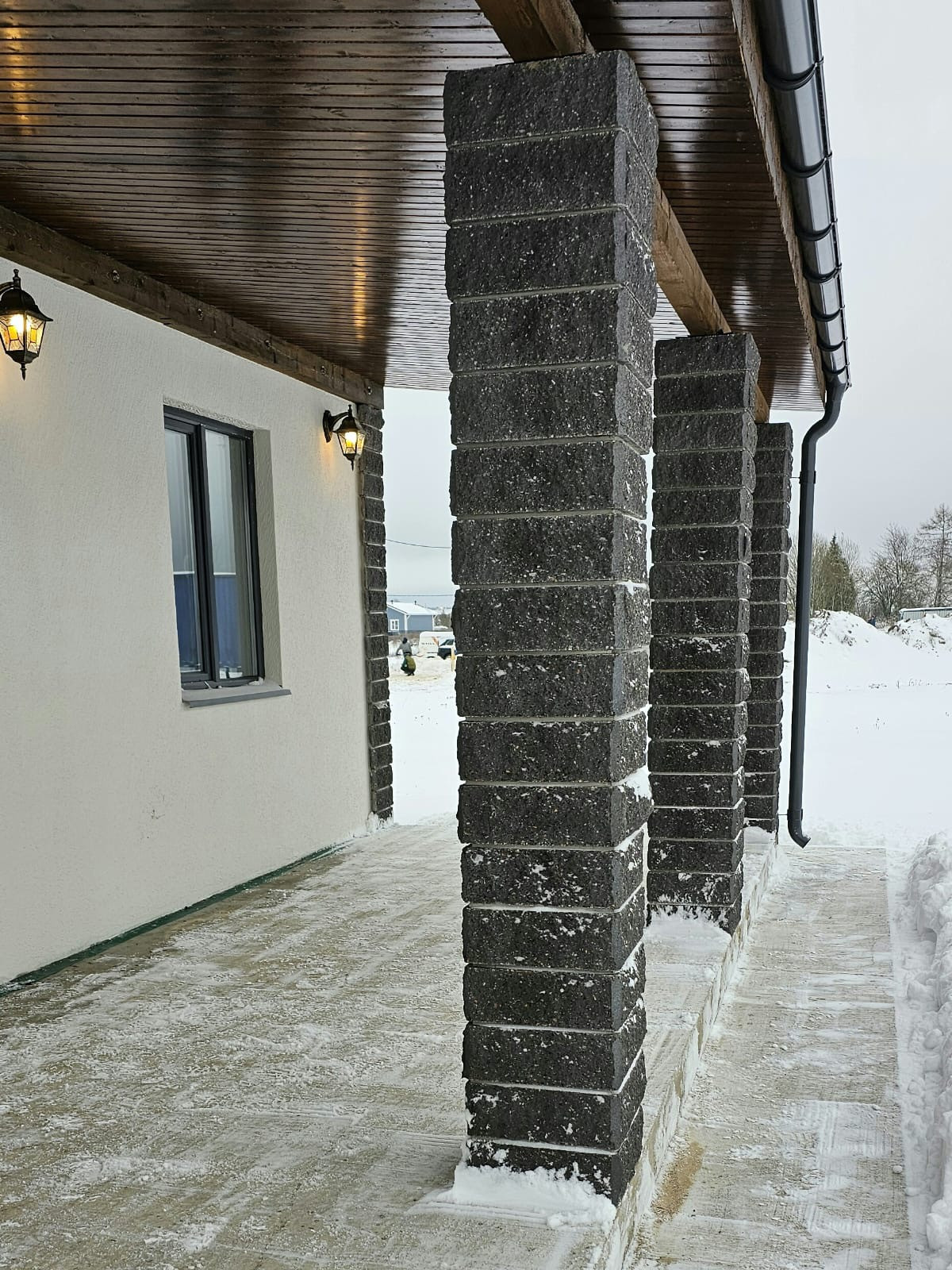 Водоснабжение и электрика разведены по точкам, розетки,выключатели установлены,натяжные потолки во всем доме.