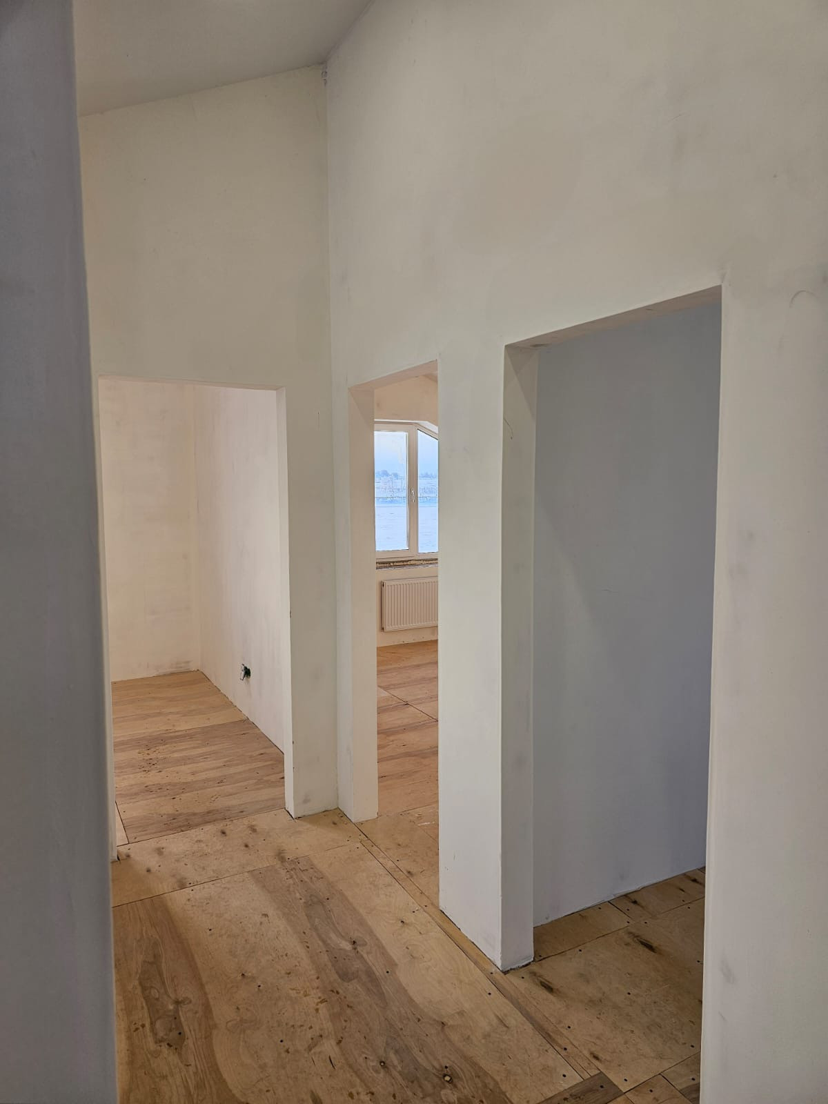 Стены оштукатурены, зашпаклёваны, выровнены и готовы под обои или покраску. Вывоз мусора и чистка дорог силами администрации.