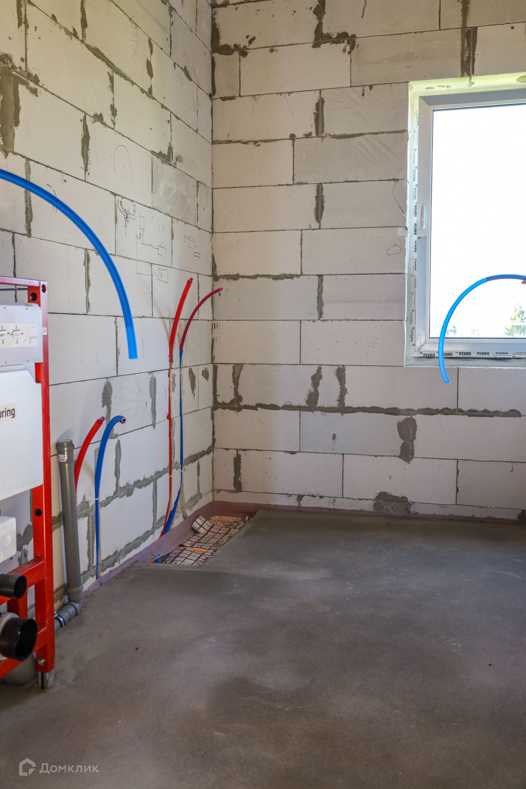 Проложены трубы тёплого пола, трубы горячего и холодного водоснабжения;