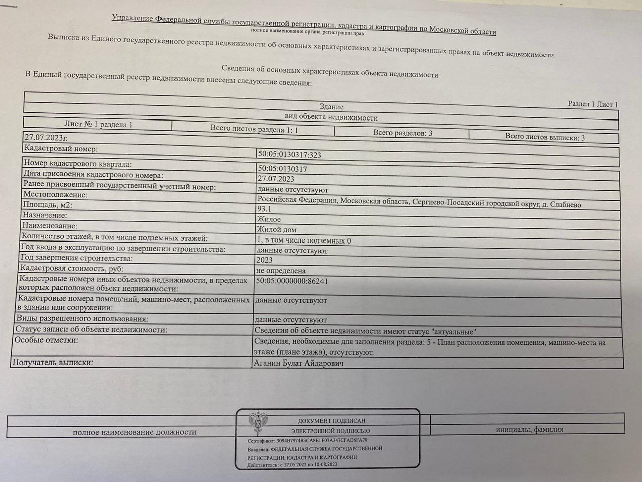 Стоимость недвижимости: