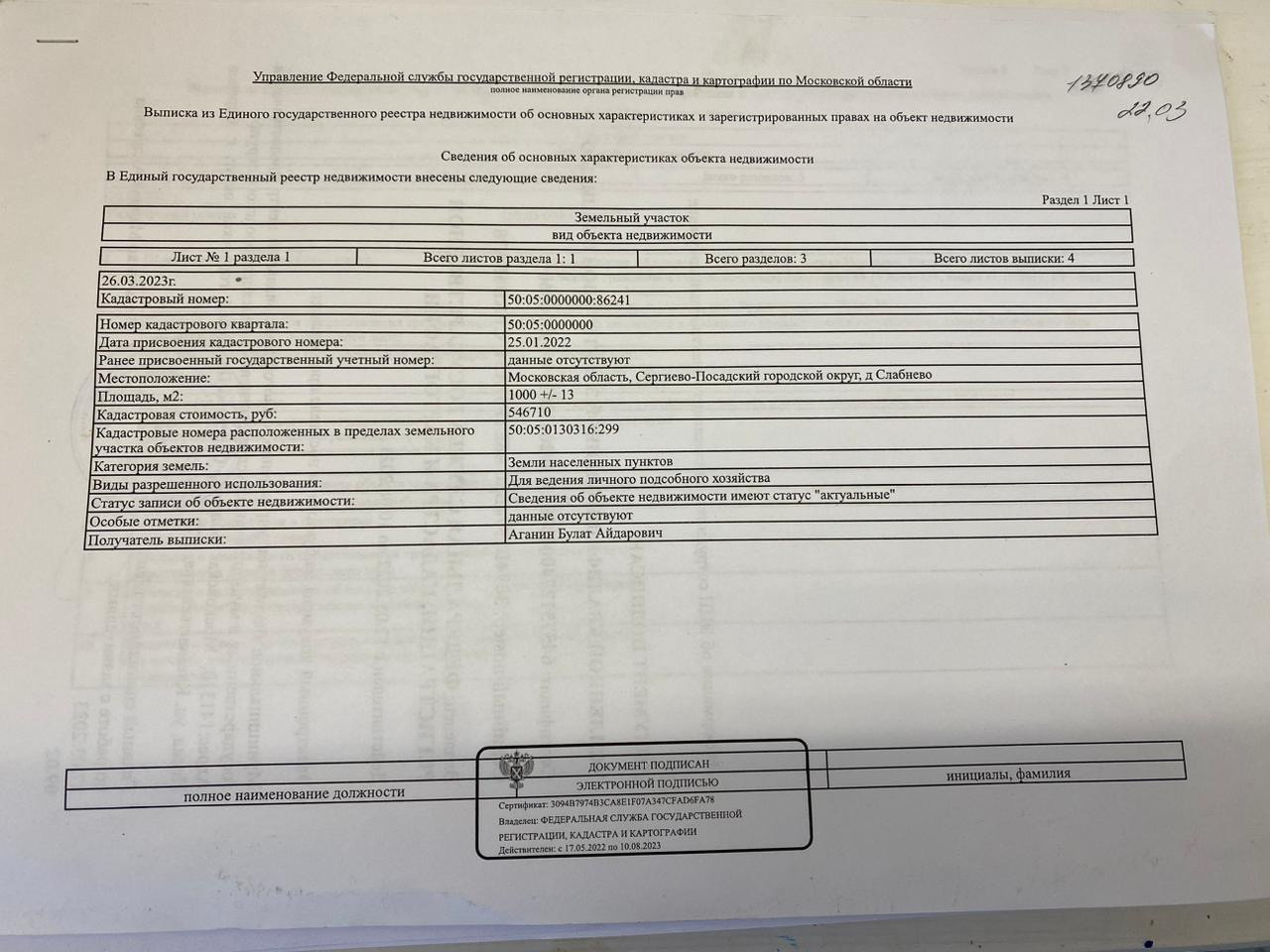 Площадь участка 10 сот.