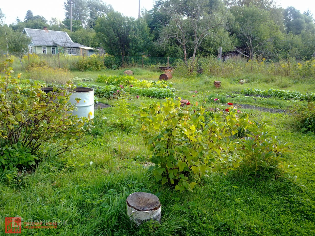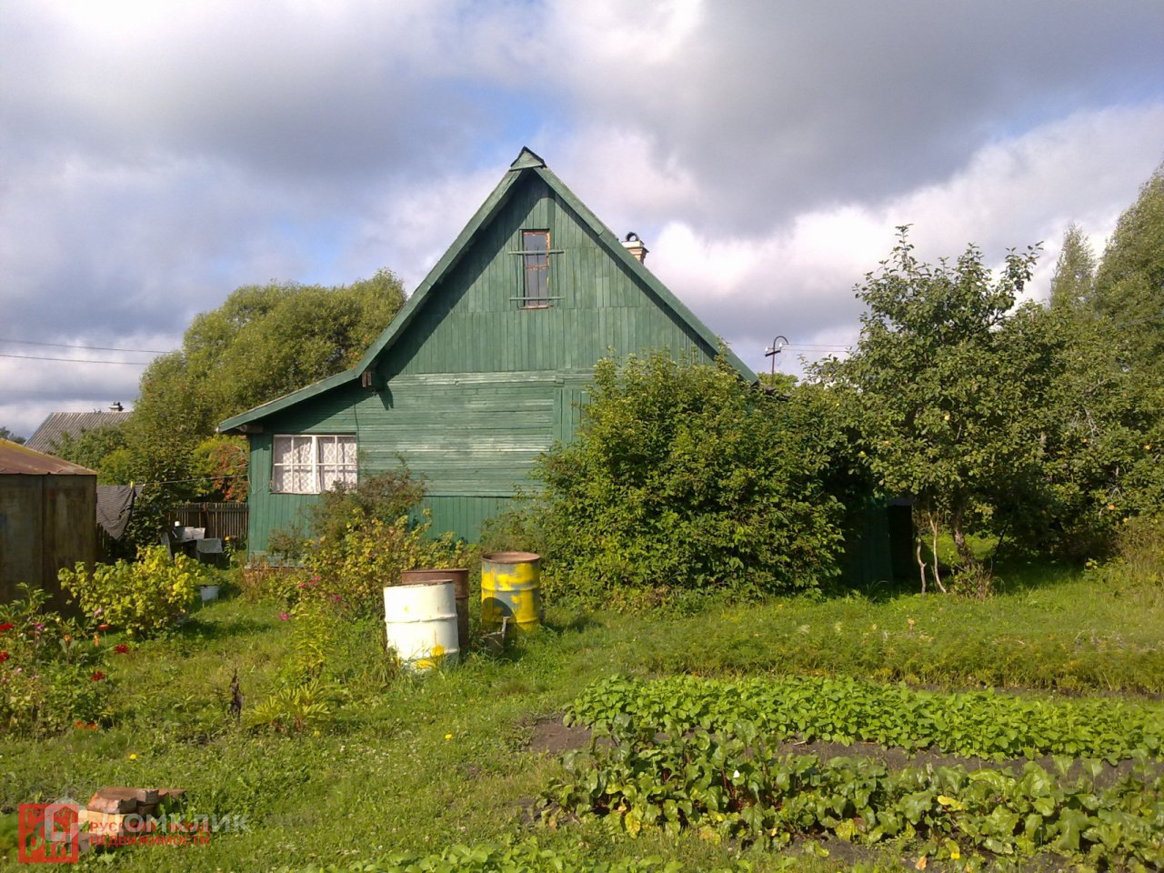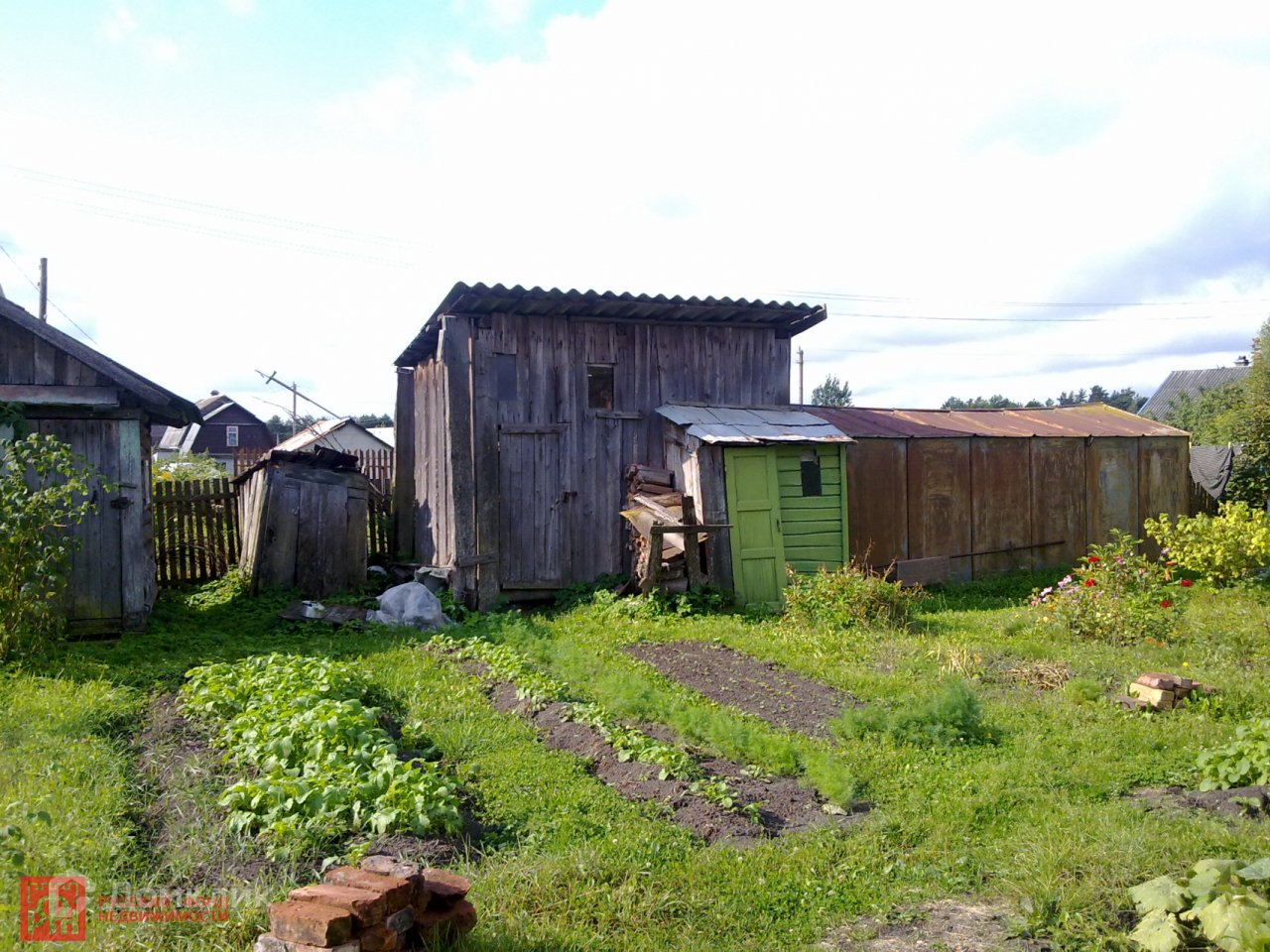В доме дровяная печь с плитой. Крыша дома из шифера, на участке баня, сарай, железный гараж, теплица, локальный санузел, колодец, плодово- ягодные деревья (яблони, слива) и кусты (смородина, крыжовник). Недалеко от дома (~150 м) есть родник.