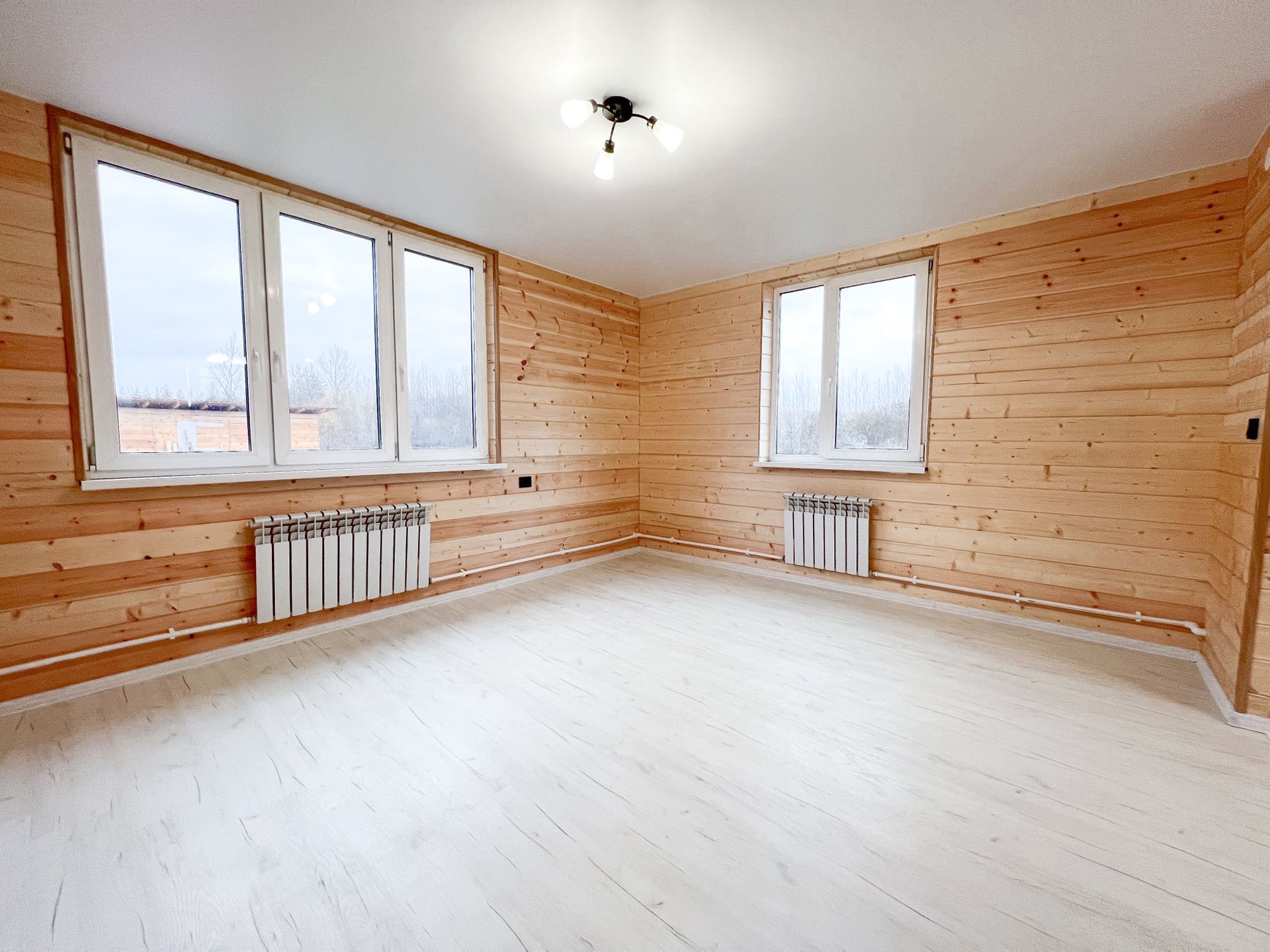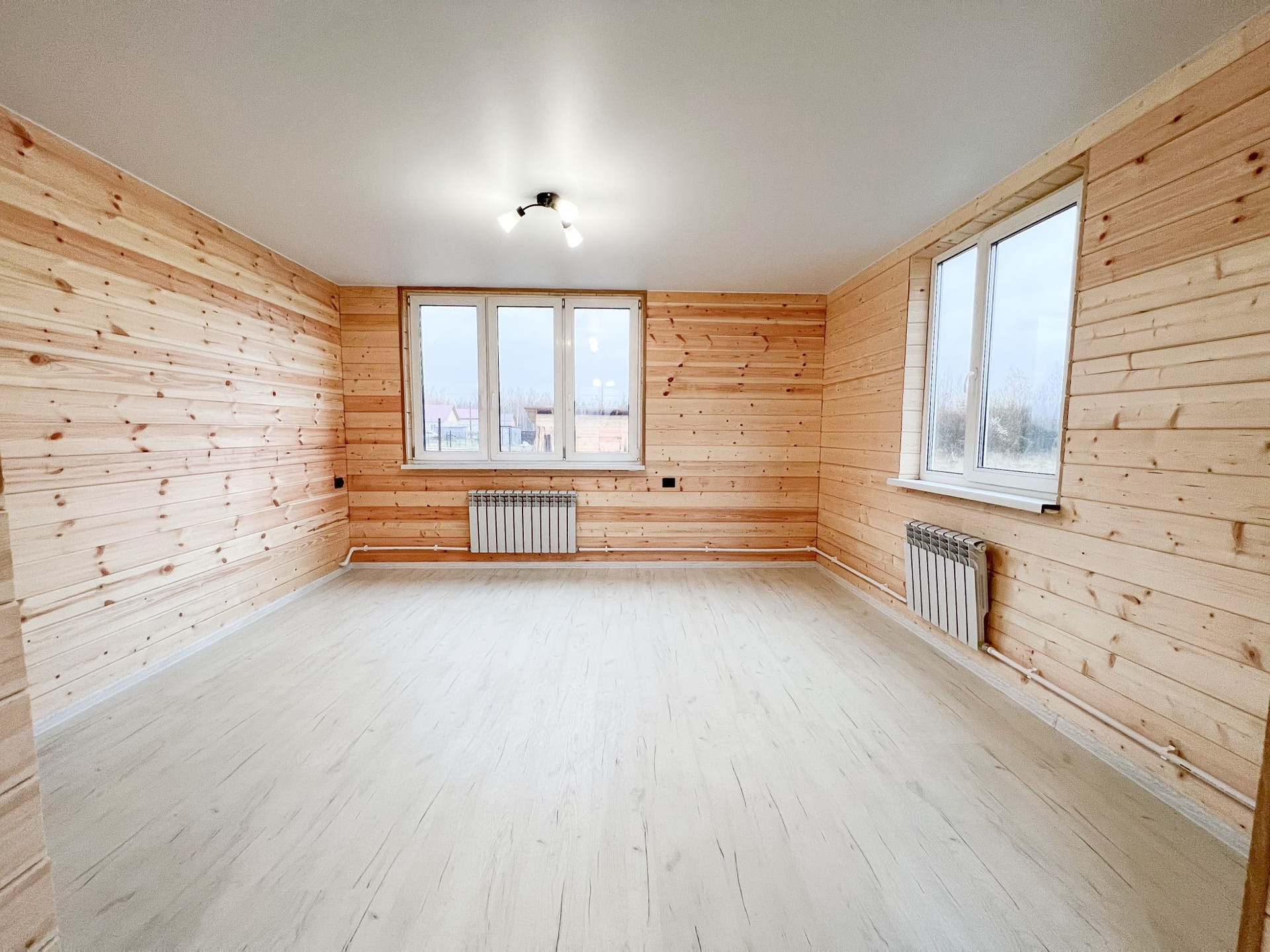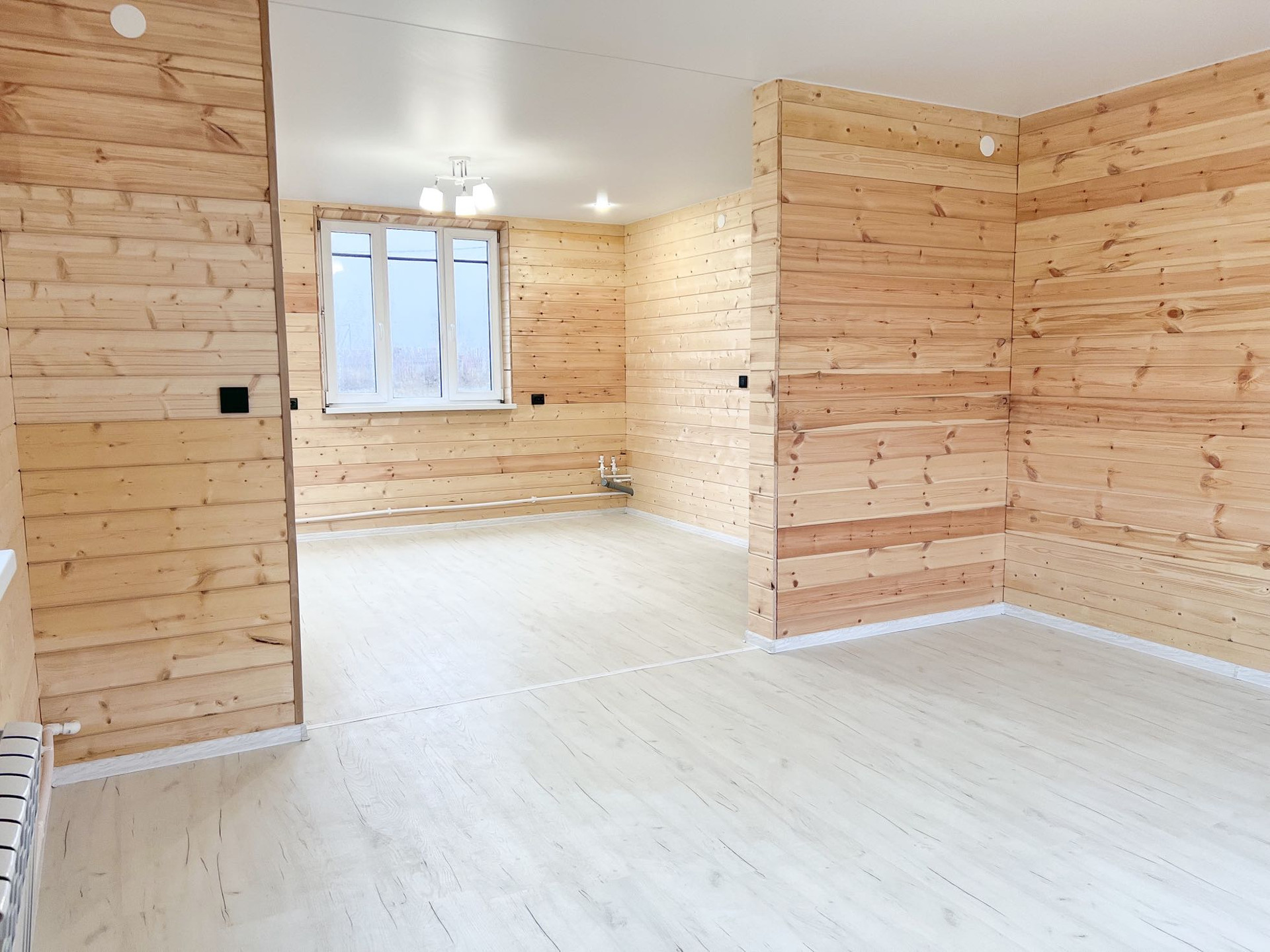 • просторная кухня-гостиная 30.5 кв.м. (при необходимости комнату можно изолировать), отделка: стены - имитация бруса, пол - ламинат 33 класса, подведены трубы водоснабжения и канализации для кухни