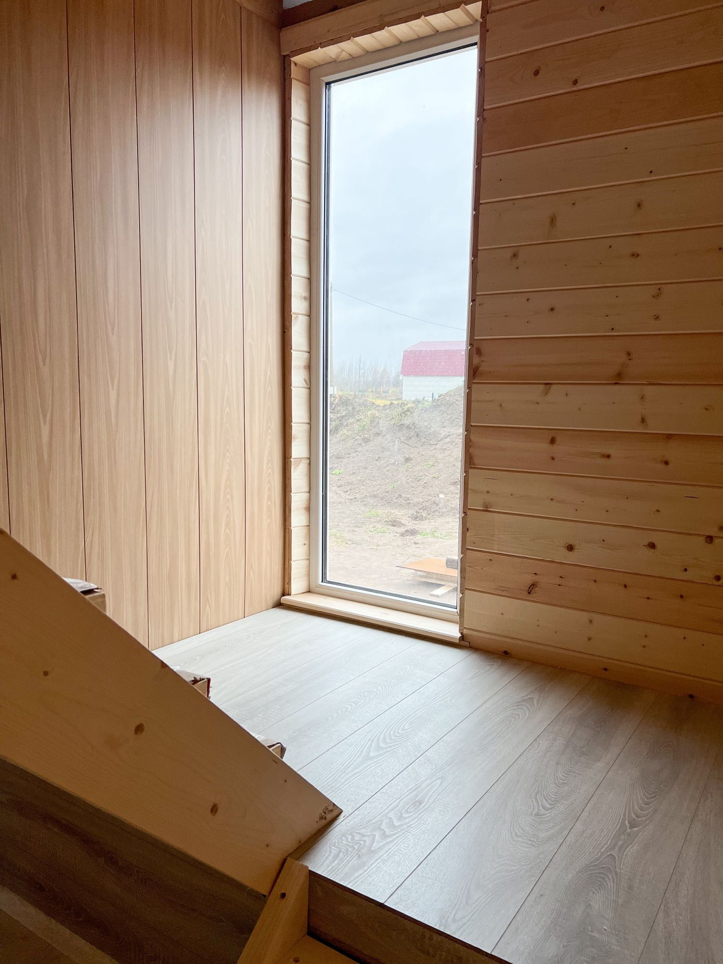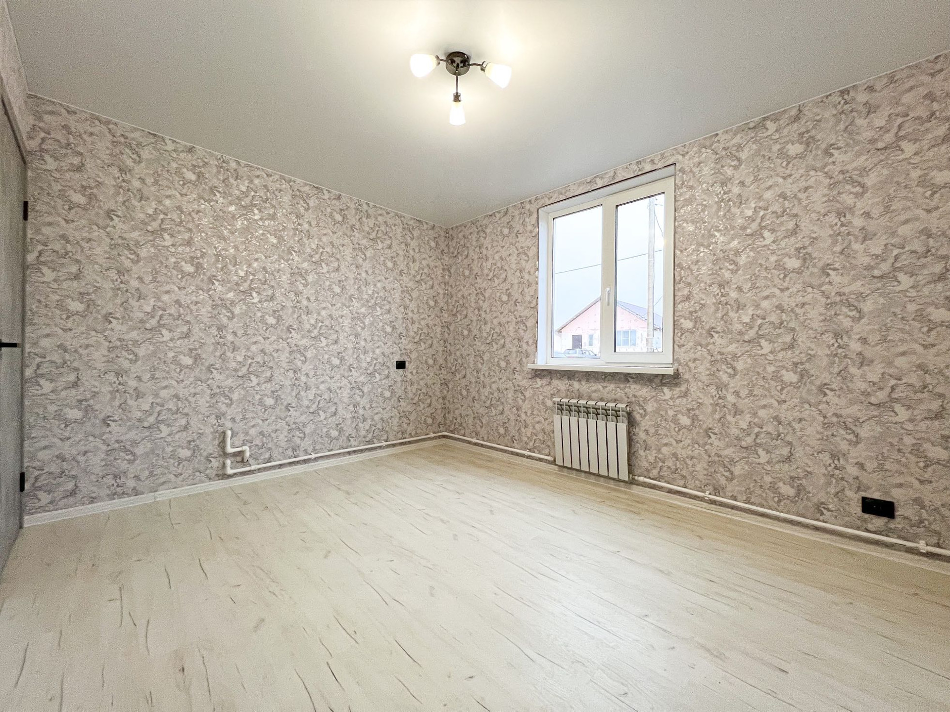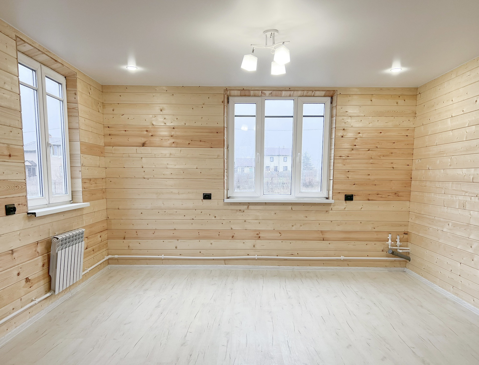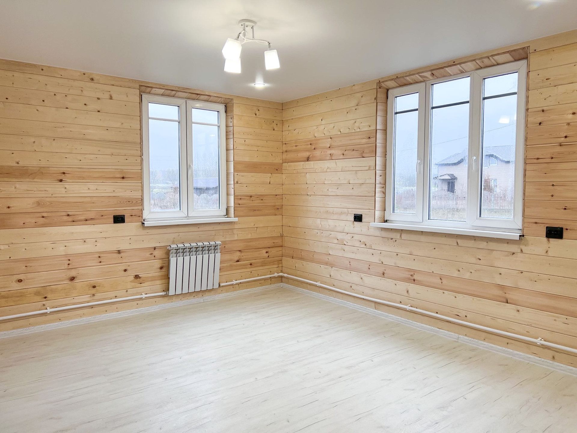 • просторная кухня-гостиная 30.5 кв.м. (при необходимости комнату можно изолировать), отделка: стены - имитация бруса, пол - ламинат 33 класса, подведены трубы водоснабжения и канализации для кухни
