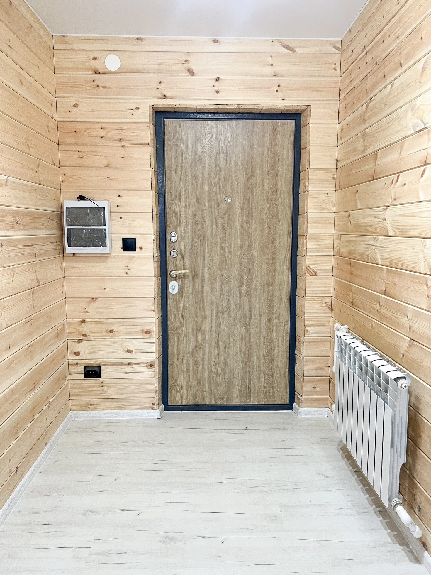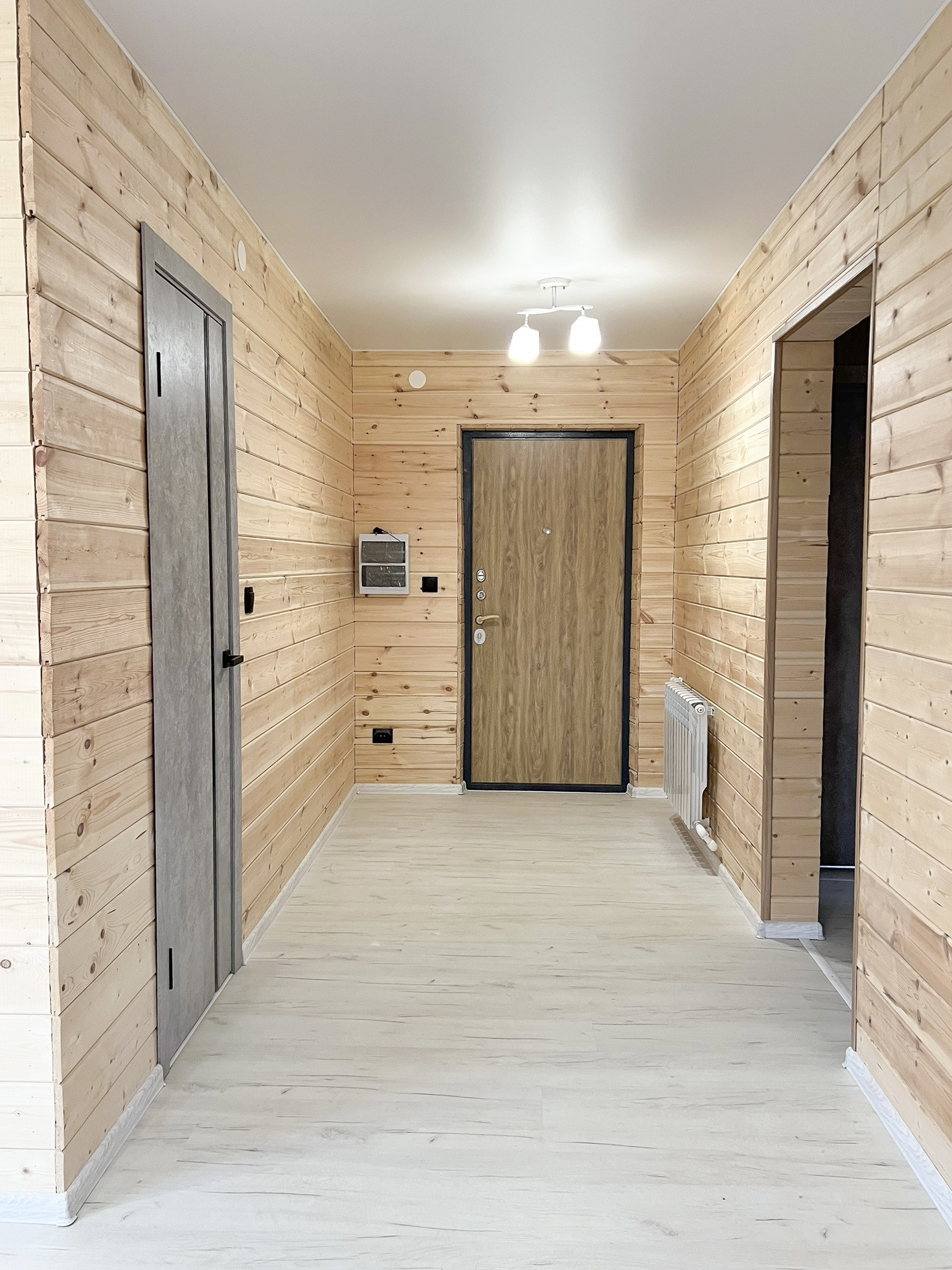• прихожая 6.5 кв.м., отделка: стены - имитация бруса, пол - ламинат 33 класса