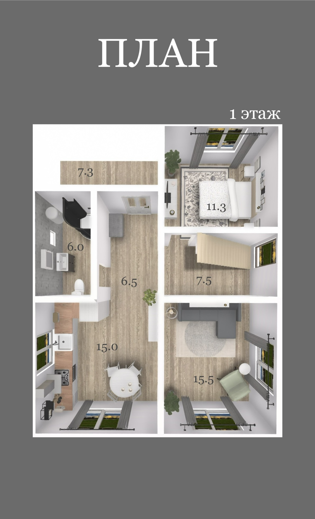 • лестничное пространство 7.5 кв.м.