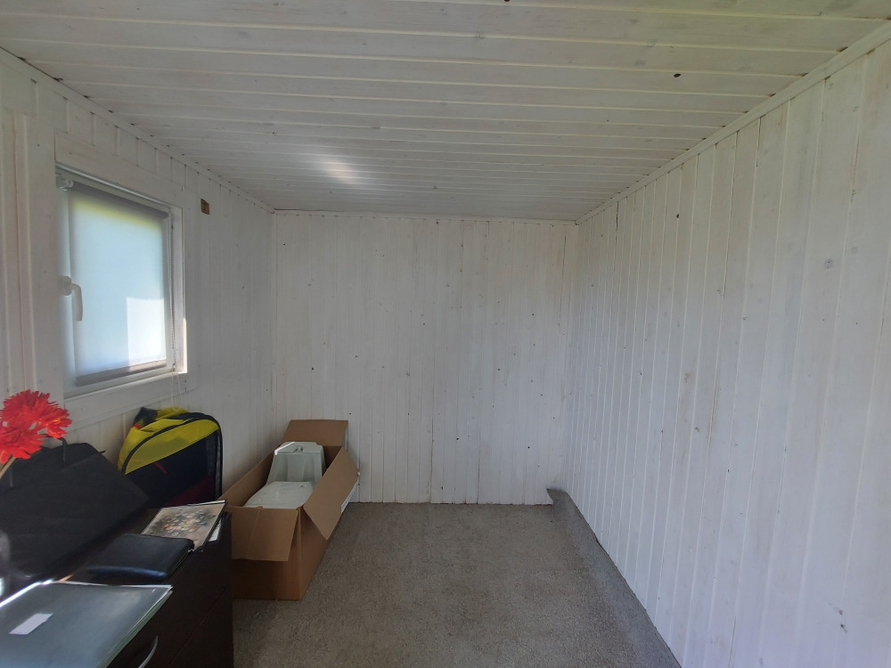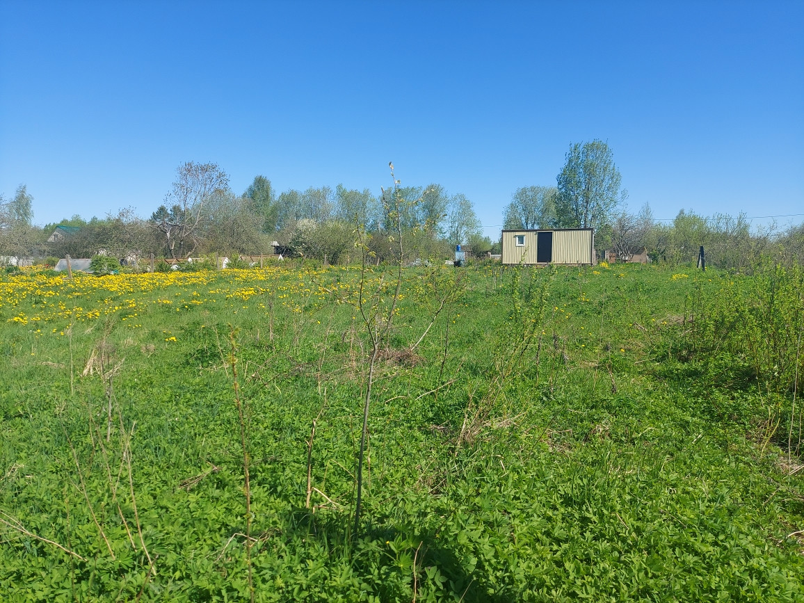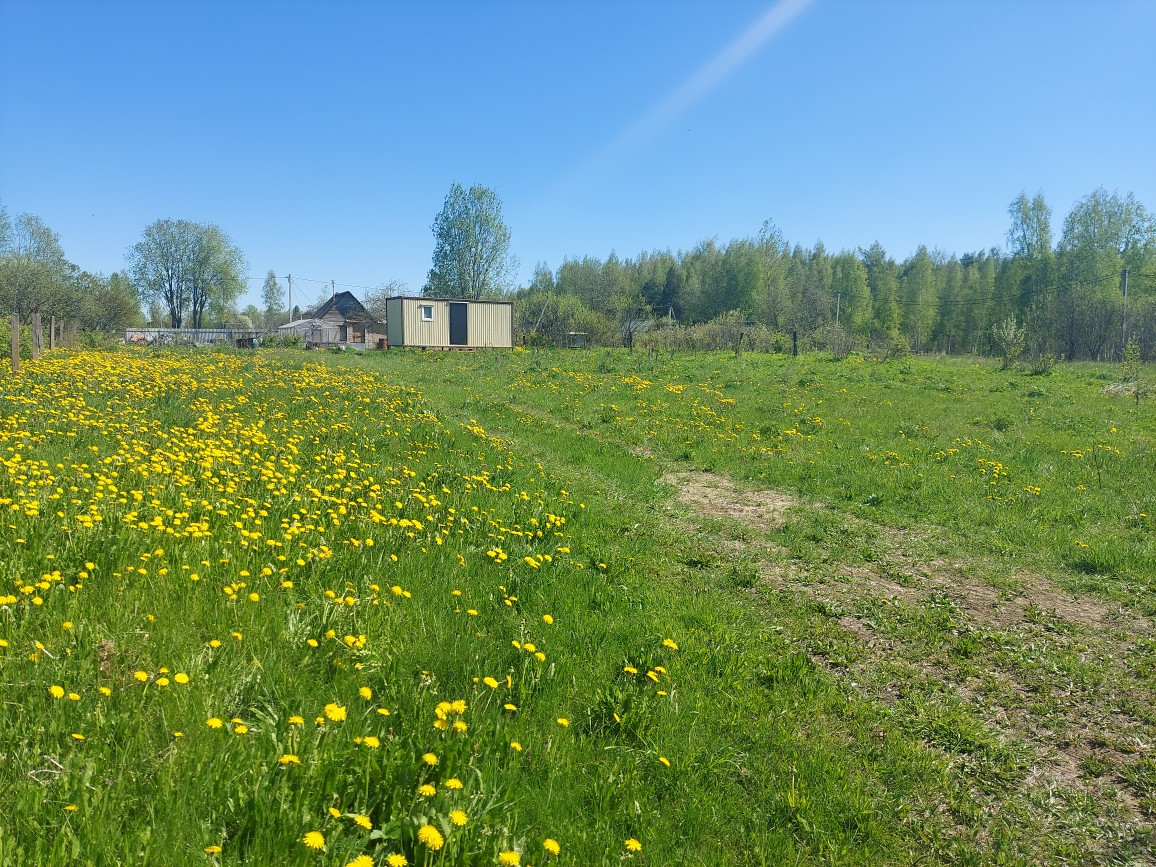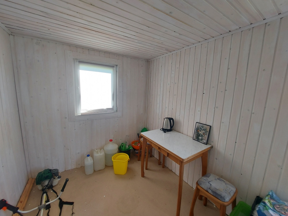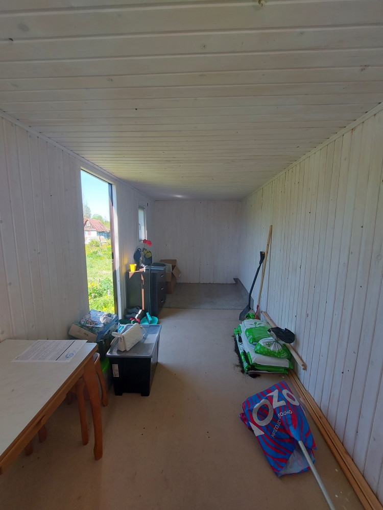 Участок 10 соток, ровный –произведена планировка, высокий, есть заезд на участок, с круглогодичным подъездом, расположен в тихой и уютной жилой деревне, с постоянным проживанием соседей. На участке установлен новый утепленный модульный дом 6*2,5 на свайном фундаменте, фасады – крашенное профилированное железо, 2 окна – пластиковые ст/пакеты, дверь железная. Внутри отделка – крашенная вагонка, полы – шпунтированное ДСП. Дом продается с мебелью. Есть новый биотуалет (не использовался).