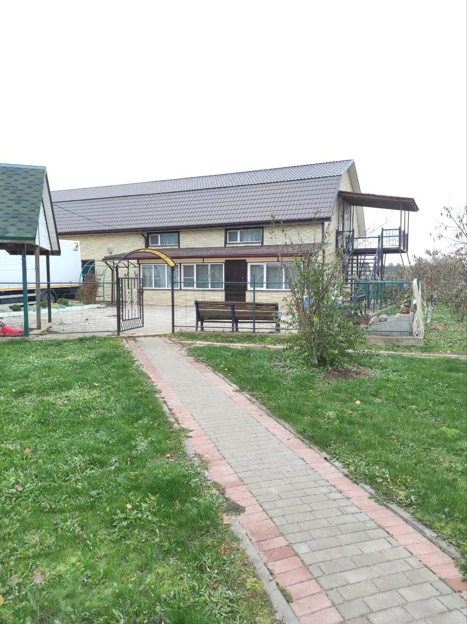 Здание 478 кв.м. Оборудовано 2-мя гаражами, помещением свободного назначения, верандой, прихожей, сауной, кухней.