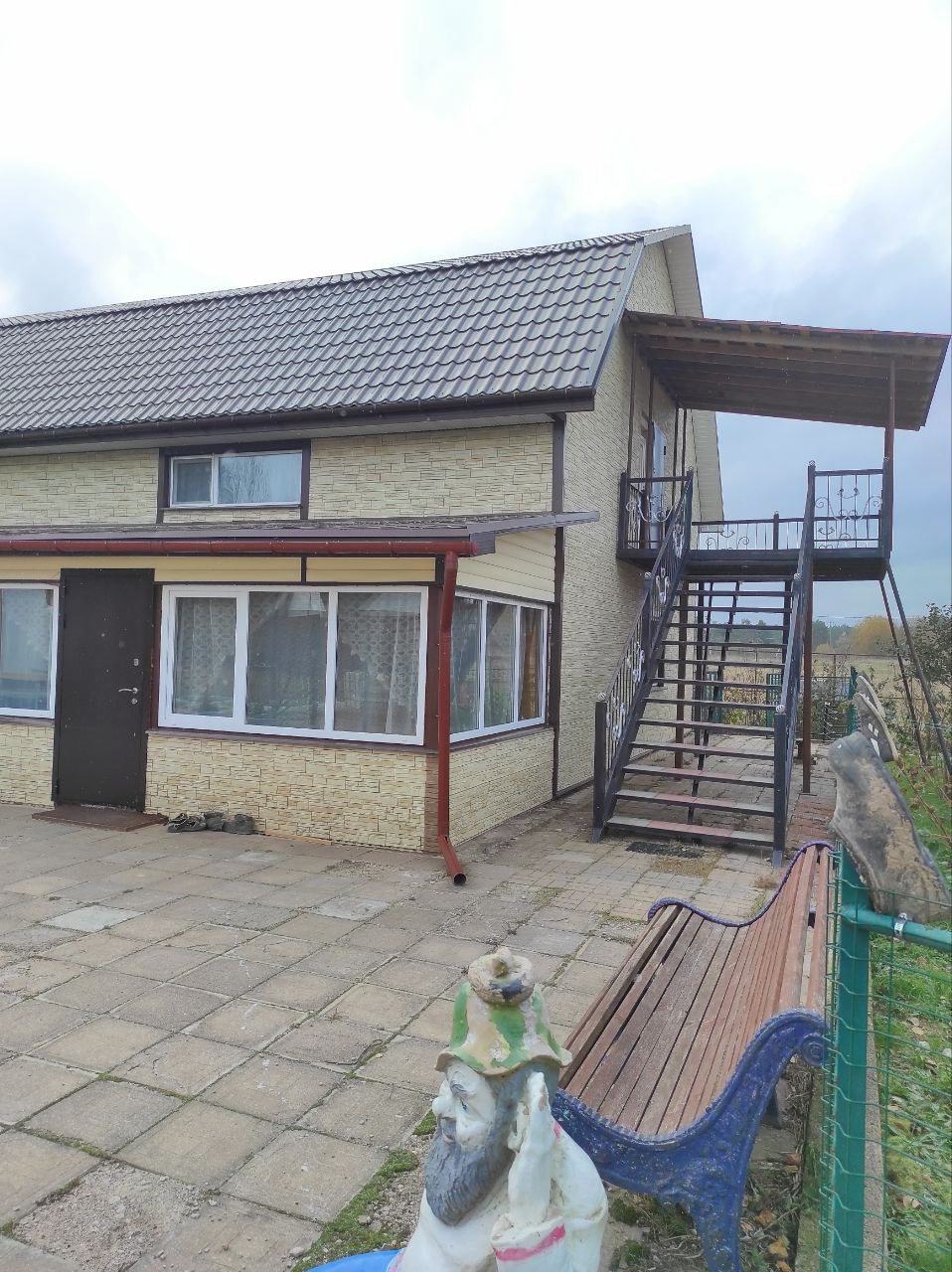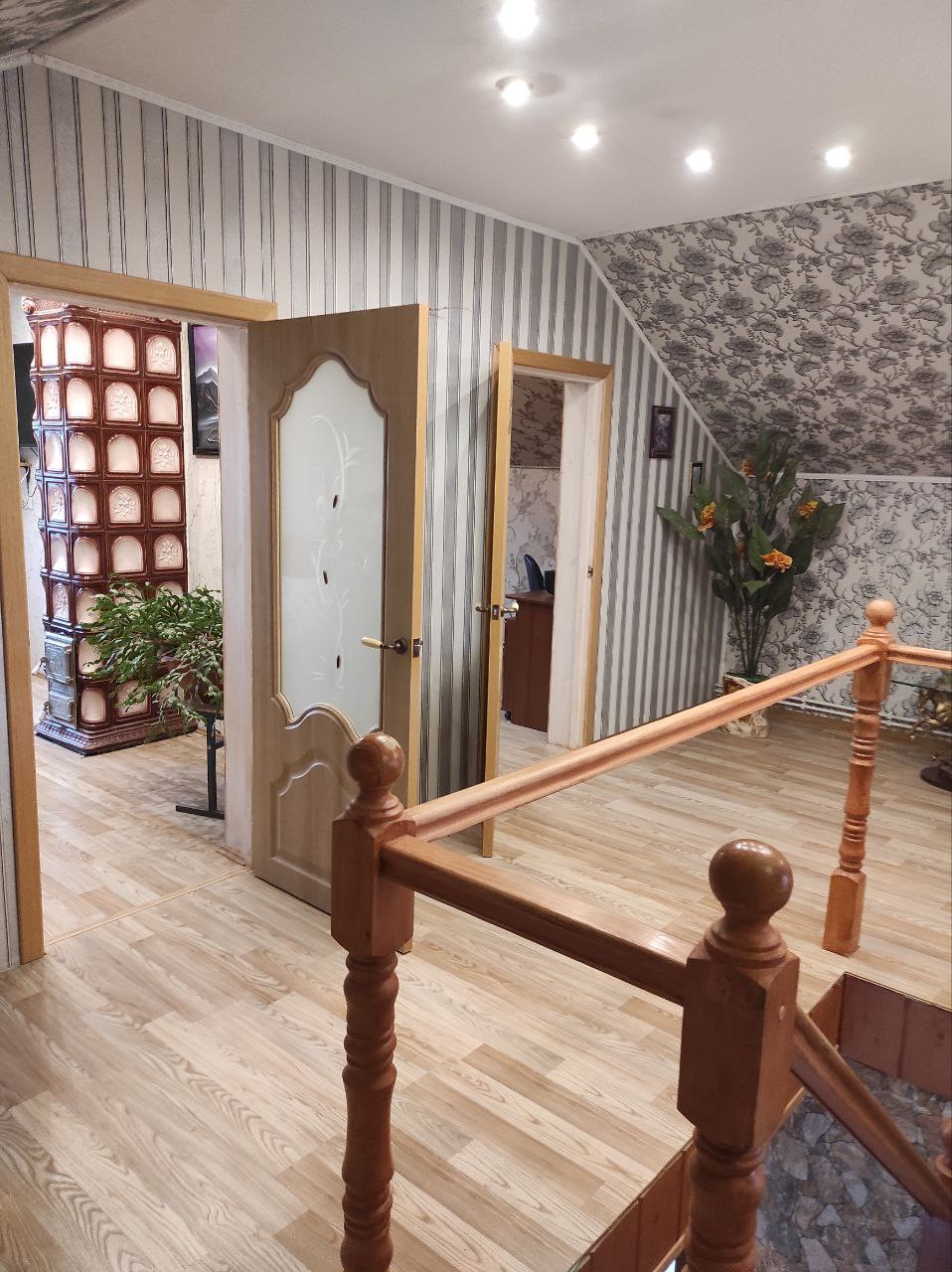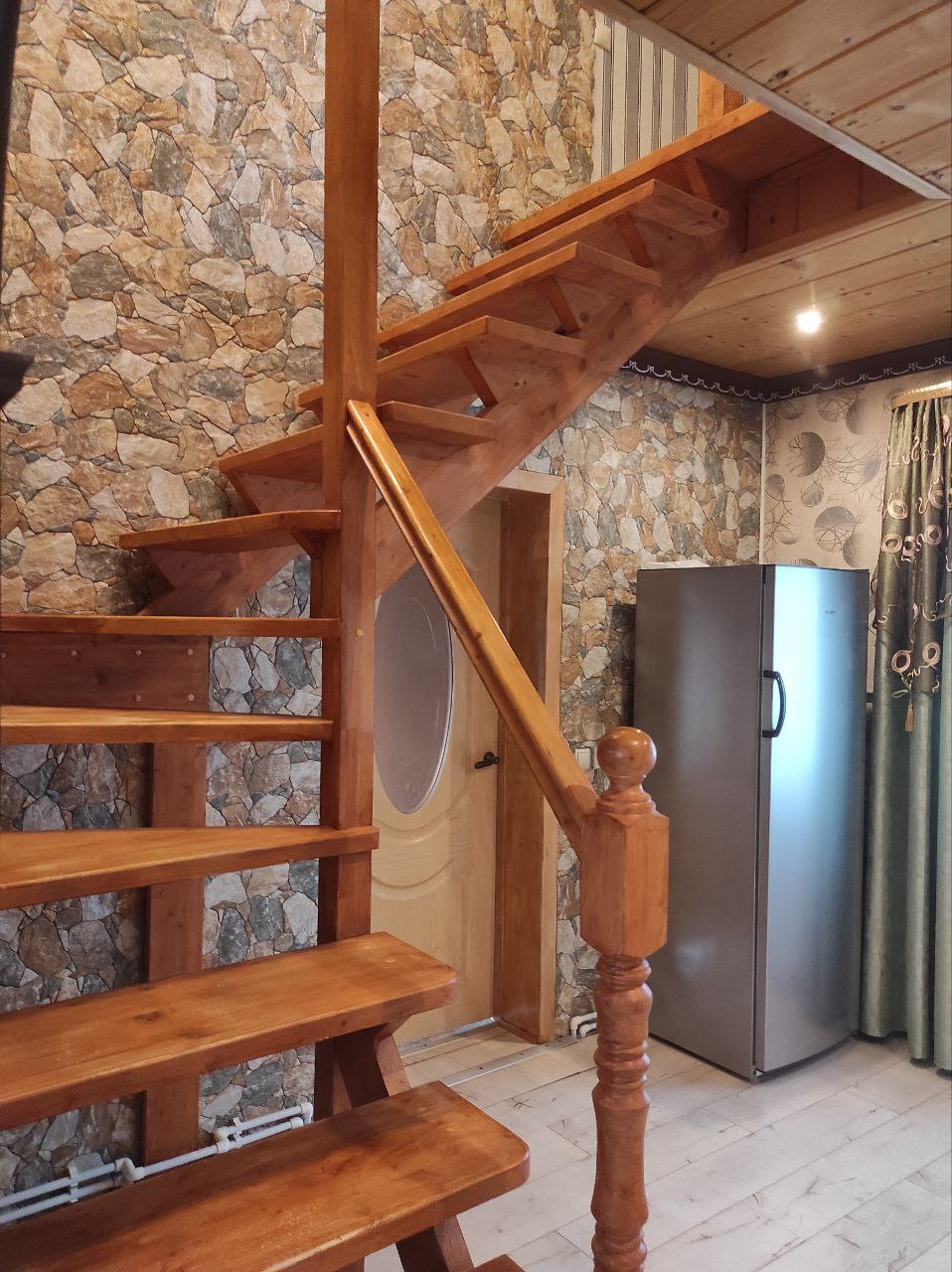 На второй этаж есть отдельный вход с широкой лестницей.