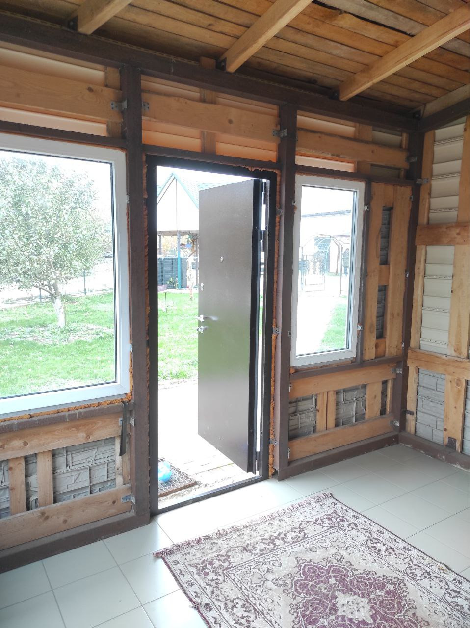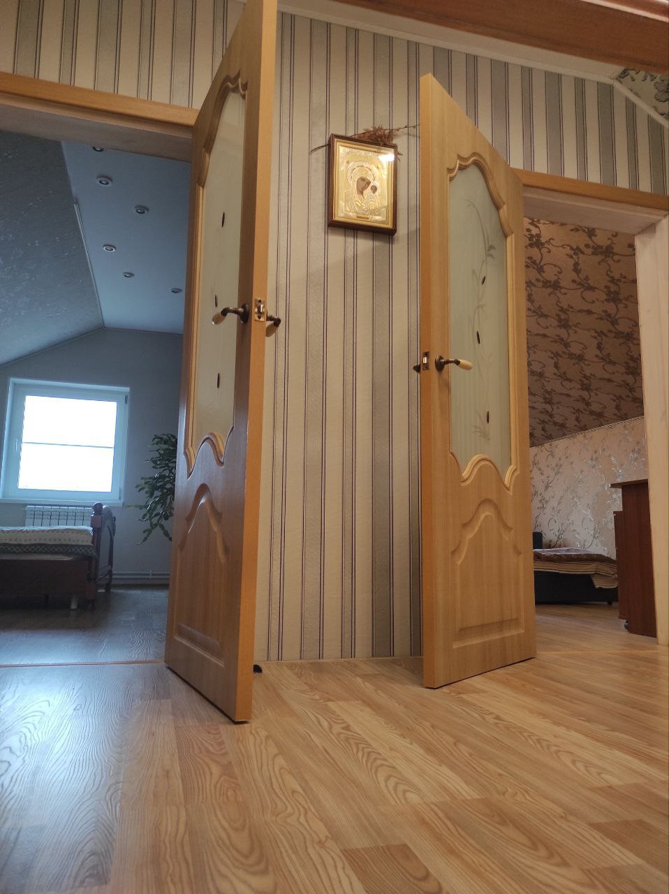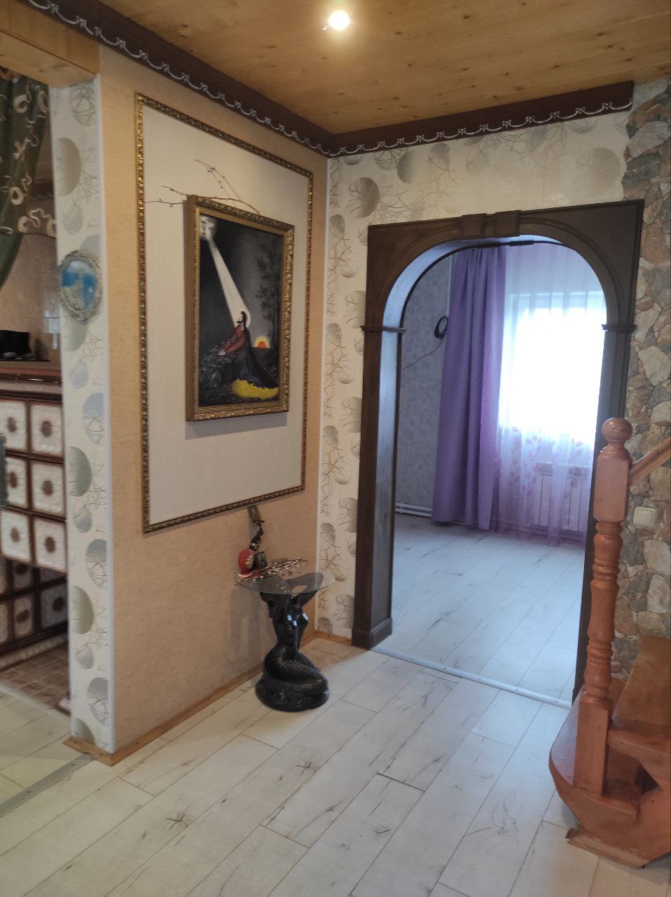На второй этаж есть отдельный вход с широкой лестницей.
