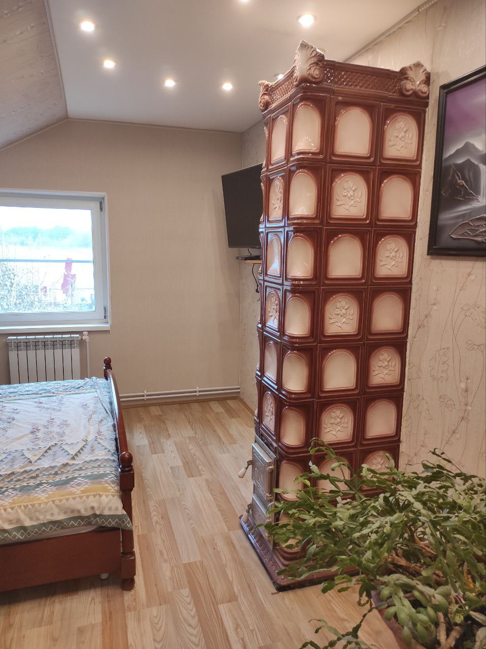 по теплу: электрокотлы + печка. Металочерепица. Интернет+телевидение.