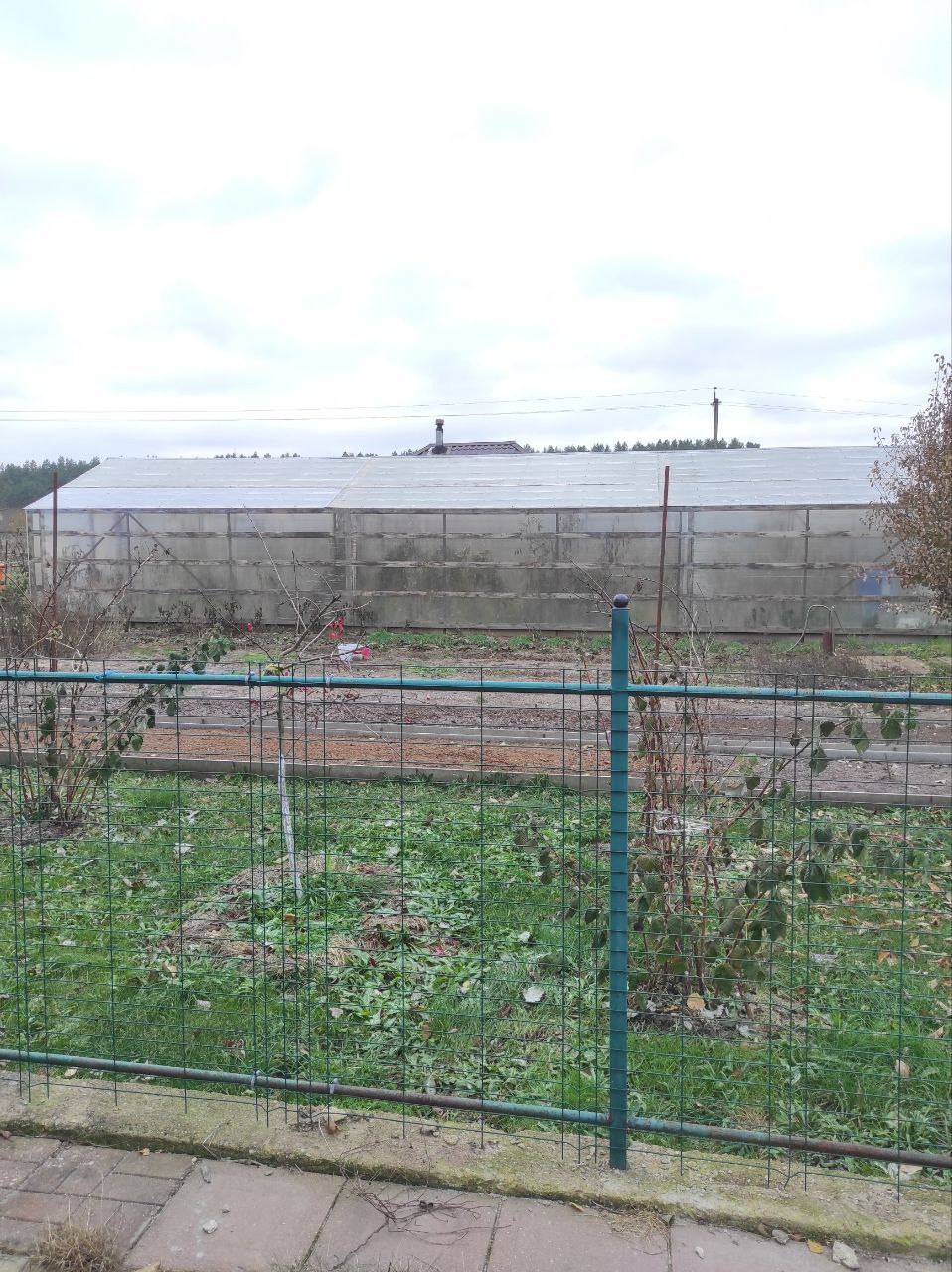 Вдоль забора большая теплица 6х18 кв.м. Канализация-септик, водопровод-скважина 24 метра.