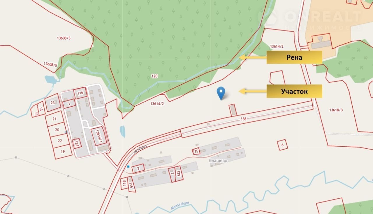 ✅ Хорошее расположение: по верхней границе участок выходит в лес и протекает небольшая река. Круглогодичная дорога с двух сторон от участка.
