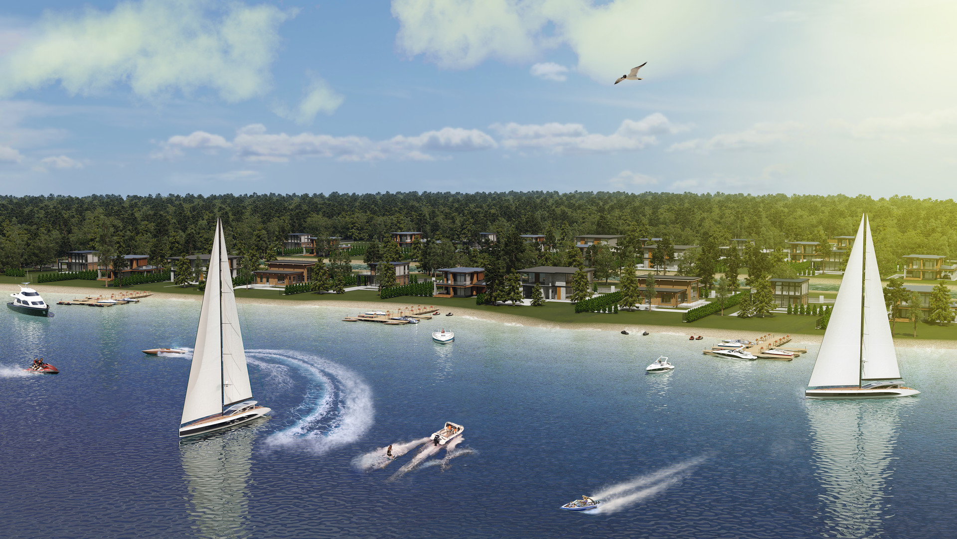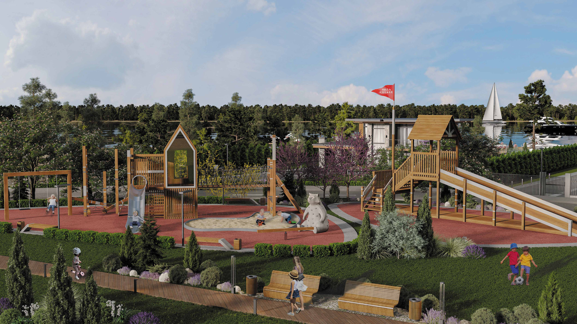 В 20 минутах от резиденции Volga Village находится курортная зона с аквапарком, гольф-клубом, горнолыжным курортом и яхт-клубом. Сторонники расслабленного отдыха смогут насладиться спа-центром или провести семейный ужин в одном из 15 ресторанов. Для детей предусмотрены игровые зоны и анимационные программы, парусный спорт, обучение игре в гольф, экспедиции в лес, командные игры, увлекательные мастер-классы.