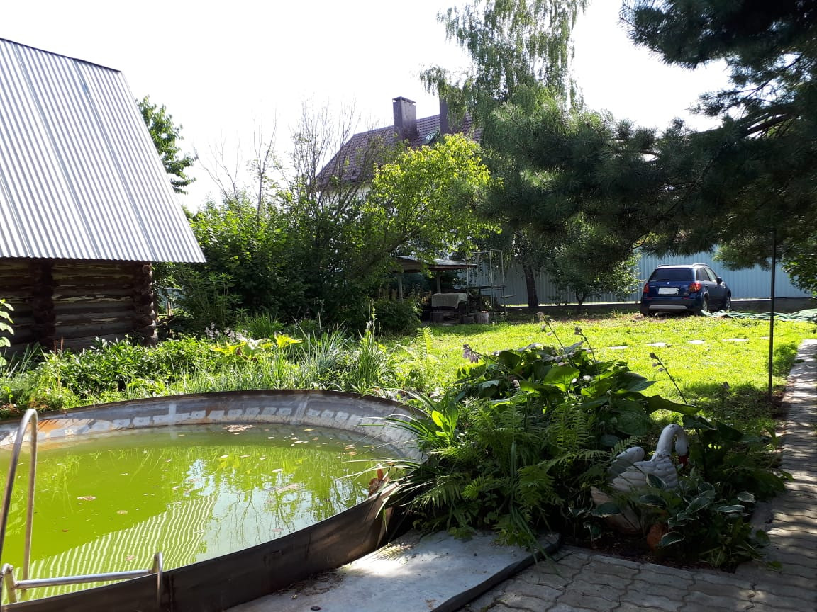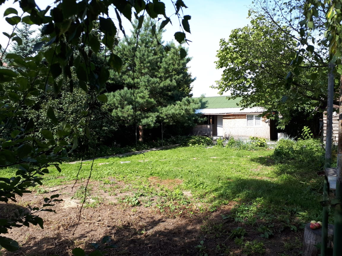Участок квадратной формы с фруктовым садом: две плодонсных черешни (чёрная и красная), яблони, груши, калина, орешник, несколько сортов малины, жимолость. По всему участку : земляника, цветы, чабрец, шалфей. Около ворот сосны и ели.