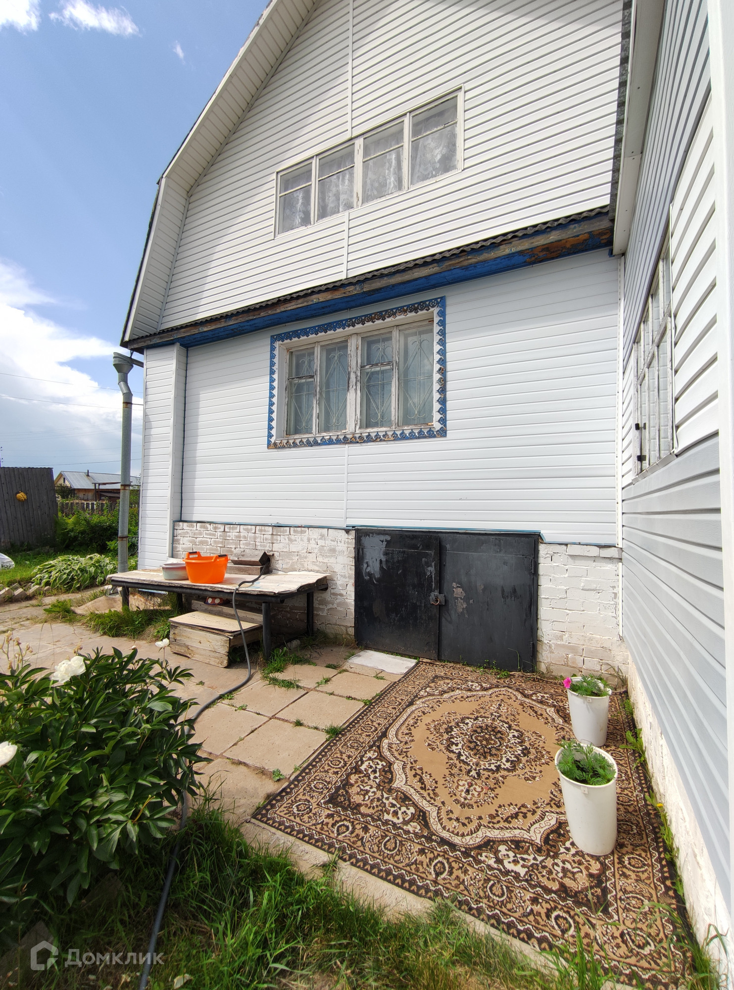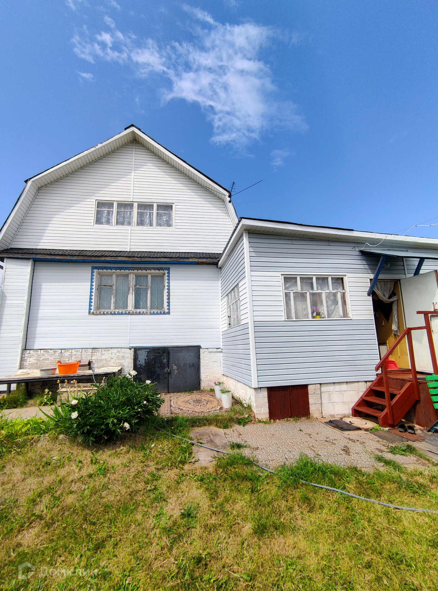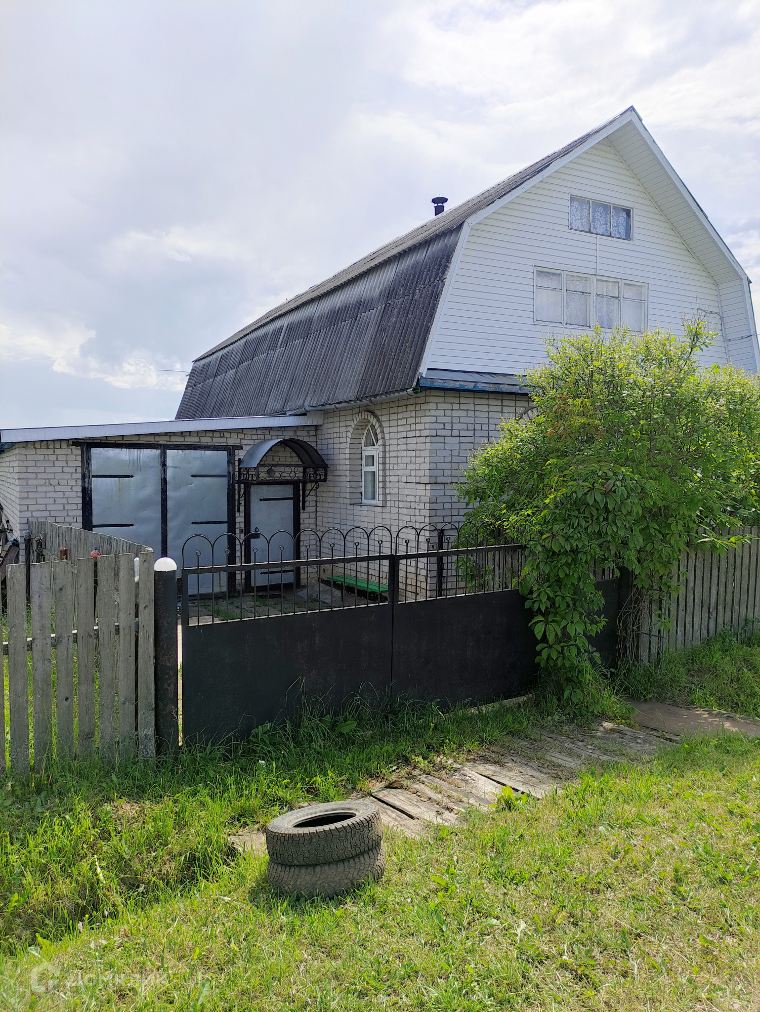 Фундамент дома: блоки ФБС. Материал стен: кирпич и рубленое бревно. Для удобства в дом можно войти с двух противоположных сторон. Для обогрева и приготовления пищи на первом этаже располагается русская печь. Водоснабжение от скважины с питьевой водой. Внутренняя отделка дома выполнена преимущественно из дерева, деревянная часть дома снаружи обшита сайдингом.