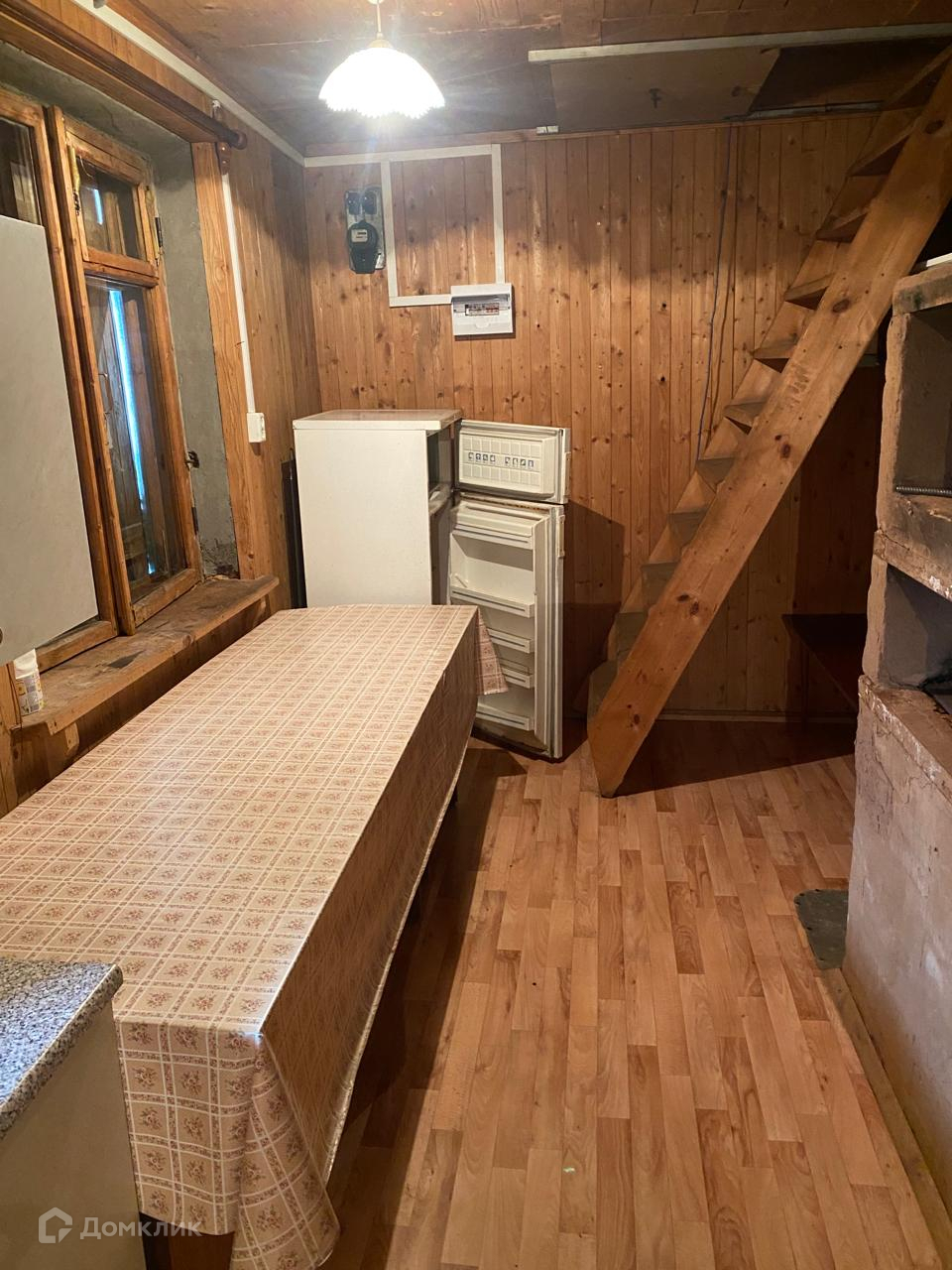 Продаем дом, по документам 57 кв.м. (1 этаж) плюс мансарда. Фундамент бетон.  Окна деревянные, на данный момент закрыты ставнями, есть печь, планировка - кухня и одна большая комната (первый этаж).